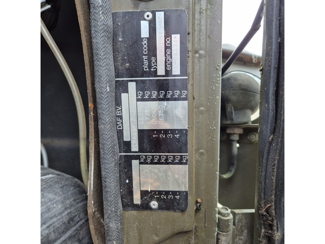 Merk: Daf Product: Vrachtwagen BouwJaar: 1990 Conditie: gebruikt Specificaties: Kenteken: Niet geregistreerd Eerste toelating nationaal: Niet geregistreerd APK vervaldatum: Onbekend Brandstof: Diesel Afgelezen tellerstand: Onbekend Transmissie: Handgeschakeld Aantal sleutels: 0 VIN nummer: XLRAV94NT0E357824 Start: Onbekend Waargenomen gebreken Diverse schades, gebreken en verwijdering van onderdelen. Werking onbekend Divers losliggend elektronica