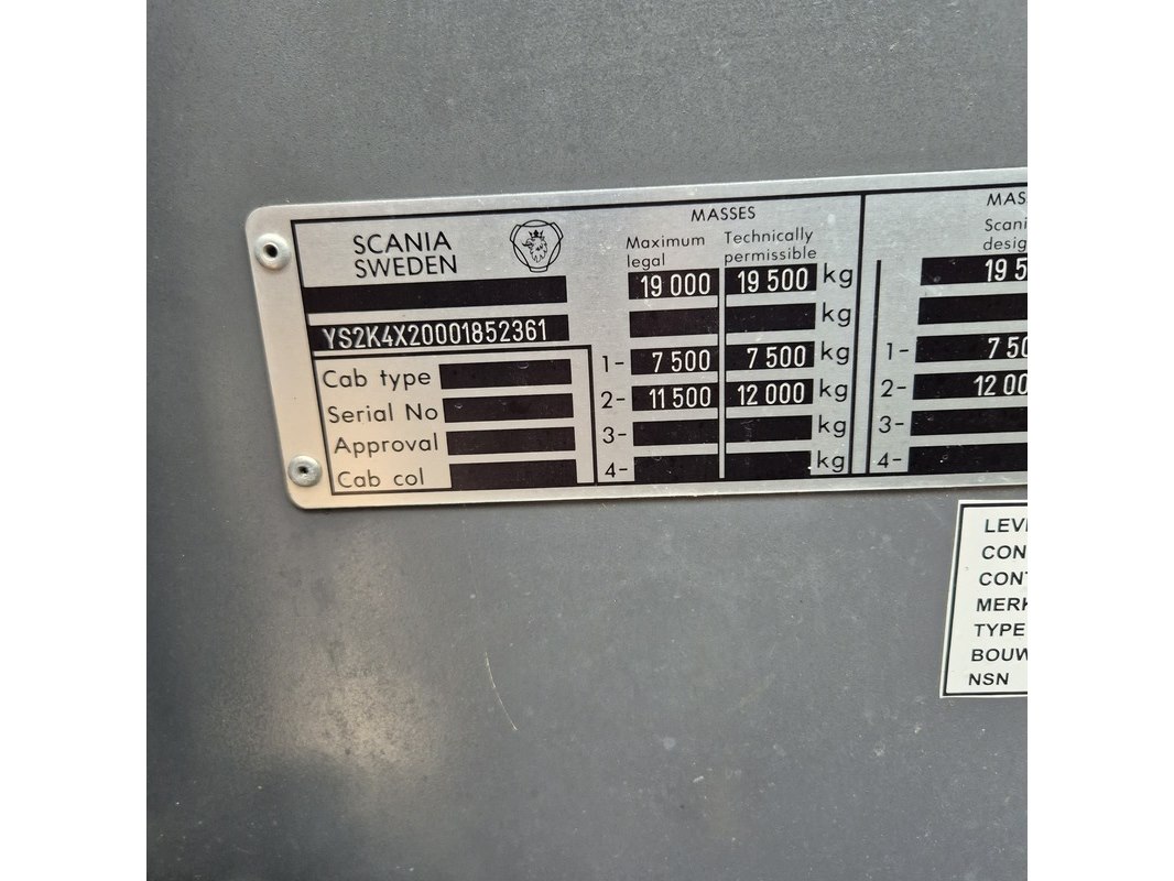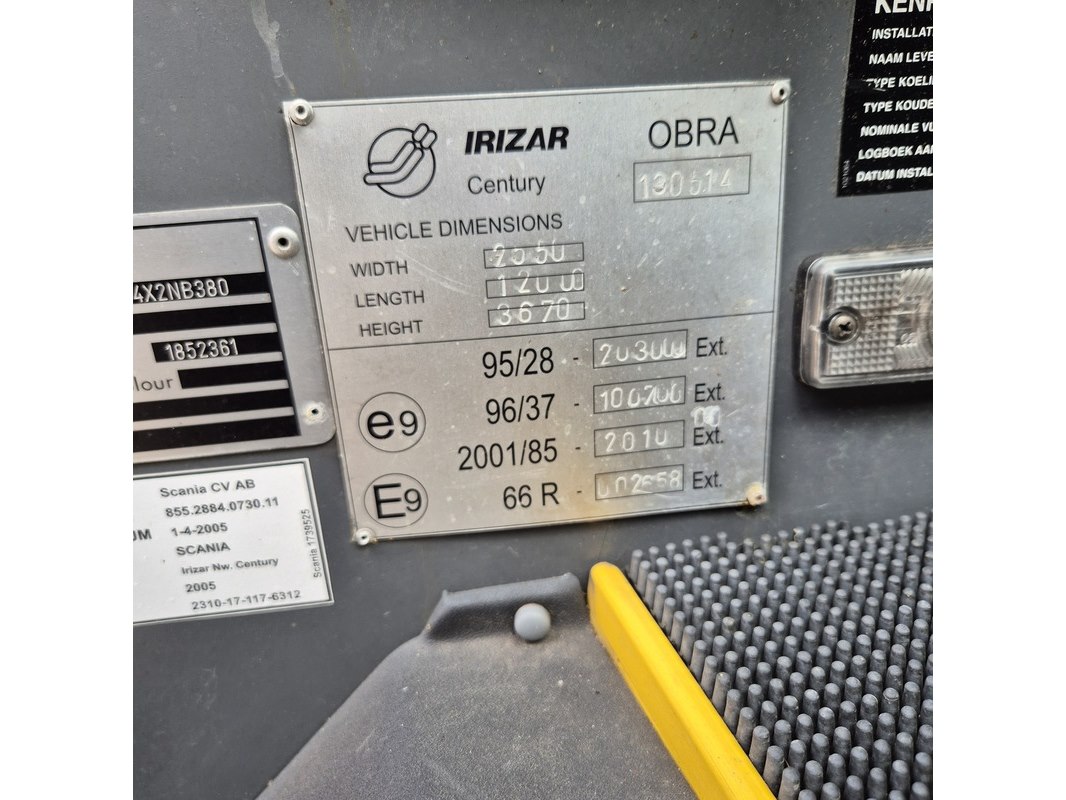 Merk: Scania Product: Touringcar BouwJaar: 2005 Conditie: gebruikt Specificaties: Kenteken: Niet geregistreerd Eerste toelating nationaal: Niet geregistreerd APK vervaldatum: Onbekend Brandstof: Diesel Afgelezen tellerstand: 318.034 Transmissie: Automaat Aantal sleutels: 2 VIN nummer: YS2K4X20001852361 Start: Onbekend Opties e.d. 48 Zitplaatsen TV schermen Cruisecontrol Radio/CD speler Elektrische ramen Trekhaak. Waargenomen gebreken Bekleding stoelen vies en deels versleten Diverse gebruikssporen en beschadigingen rondom Werking van e.e.a. onbekend