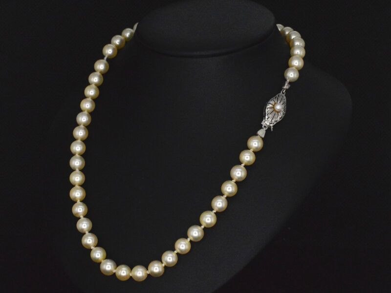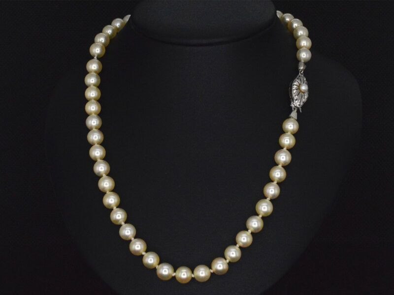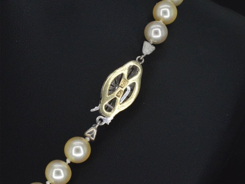Product: Parel snoer met witgouden sluiting Specificaties: Parel: Echte parels Kleur: Wit - creme Afmeting: 3.5 - 7 mm Luster: Zeer mooi Kwaliteit: AAA Juweel: Collier Gewicht: 25.8 gram Afmetingen/lengte: 45 cm Materiaal: 14k goud (585) Conditie: Zo goed als nieuw Verpakking: Luxe sieradendoos Toelichting: De kwaliteit is overgenomen van het rapport behorend bij item. De waardebepaling is een beoordeling van een gecertificeerde diamantair, gebaseerd op consumentenprijzen. Consumentenprijs: € 6.000,-