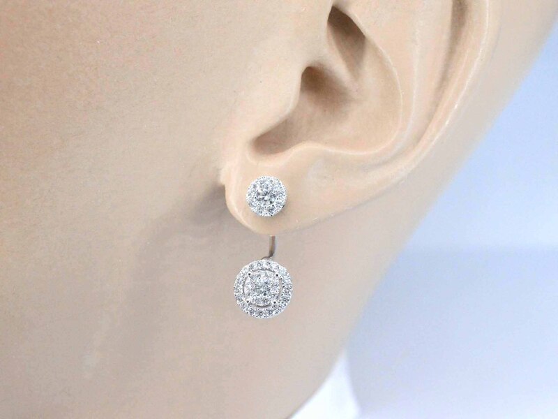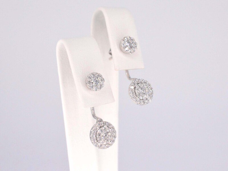 Product: Witgouden luxe dubbele oorknoppen met diamanten Specificaties: Diamant: Natuurlijk Aantal: 74 stuks Slijpvorm: Briljant geslepen Gewicht (carat): 1.00 carat Kleur: F-G Zuiverheid: VS Slijpkwaliteit: Zeer mooi Juweel: Oorbellen Gewicht: 4.1 gram Materiaal: 18K goud (750) Conditie: Nieuw Verpakking: Luxe sieradendoos Toelichting: De kwaliteit is overgenomen van het rapport behorend bij item. De waardebepaling is een beoordeling van een gecertificeerde diamantair, gebaseerd op consumentenprijzen. Extra informatie: de hangende Oorbellen zijn afneembaar waardoor het sieraad als oorknop te dragen is Consumentenprijs: € 7.000,-