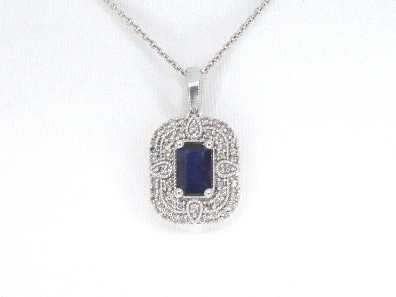 Product: Witgouden hanger met diamanten en saffier Specificaties: Diamant: Natuurlijk Slijpvorm: Rond geslepen Gewicht (carat): 0.16 carat Kleur: F-G Zuiverheid: SI Edelsteen: Saffier Aantal: 1 stuk Slijpvorm: Emerald geslepen Gewicht (carat): 0.54 carat Kleur: Blauw Zuiverheid: Met natuurlijke insluitsels Juweel: Hanger (excl. ketting) Gewicht: 2 gram Materiaal: 14k goud (585) Conditie: Nieuw Verpakking: Luxe sieradendoos Toelichting: De kwaliteit is overgenomen van het rapport behorend bij item. De waardebepaling is een beoordeling van een gecertificeerde diamantair, gebaseerd op consumentenprijzen. Consumentenprijs: € 1.383,-