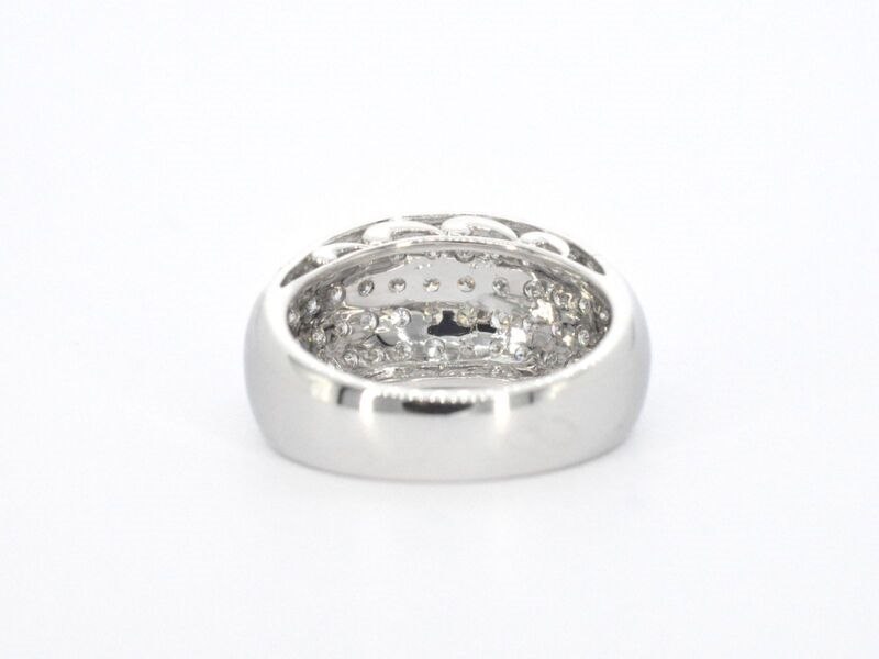 Product: Gouden ring met diamanten Specificaties: Diamant: Natuurlijk Aantal: 75 stuks Slijpvorm: Briljant geslepen Gewicht (carat): 1.00 carat Kleur: F Zuiverheid: VVS Slijpkwaliteit: Zeer mooi Juweel: Ring Gewicht: 10.3 gram Ringmaat (op maat gemaakt*): 61 (19.5 mm) Materiaal: 18k goud (750) Conditie: Zo goed als nieuw Verpakking: Luxe sieradendoos Toelichting: De kwaliteit is overgenomen van het rapport behorend bij item. De waardebepaling is een beoordeling van een gecertificeerde diamantair, gebaseerd op consumentenprijzen. Consumentenprijs: € 6.300,- *Ringen kunnen als het mogelijk is op maat gemaakt worden.