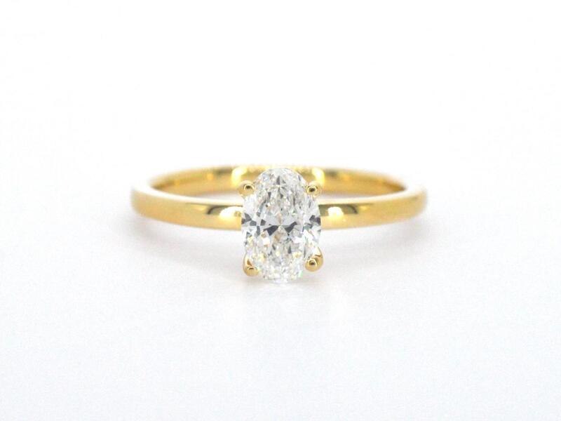 Product: Gouden solitair ring met een 1.00 carat ovaal geslepen diamant Specificaties: Diamant: Natuurlijk Aantal: 1 stuk Slijpvorm: Ovaal geslepen Gewicht (carat): 1.00 carat Kleur: F-G Zuiverheid: SI Slijpkwaliteit: Zeer mooi Juweel: Ring Gewicht: 2 gram Ringmaat (op maat gemaakt*): 53 (17 mm) Materiaal: 18k goud (750) Conditie: Nieuw Toelichting: De kwaliteit is overgenomen van het rapport behorend bij item. De waardebepaling is een beoordeling van een gecertificeerde diamantair, gebaseerd op consumentenprijzen. Consumentenprijs: € 10.500,- *Ringen kunnen als het mogelijk is op maat gemaakt worden.