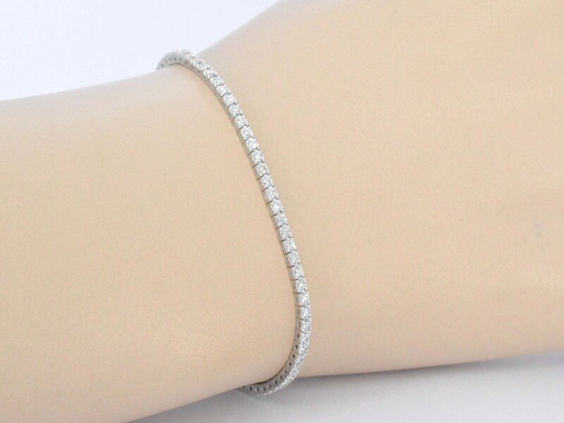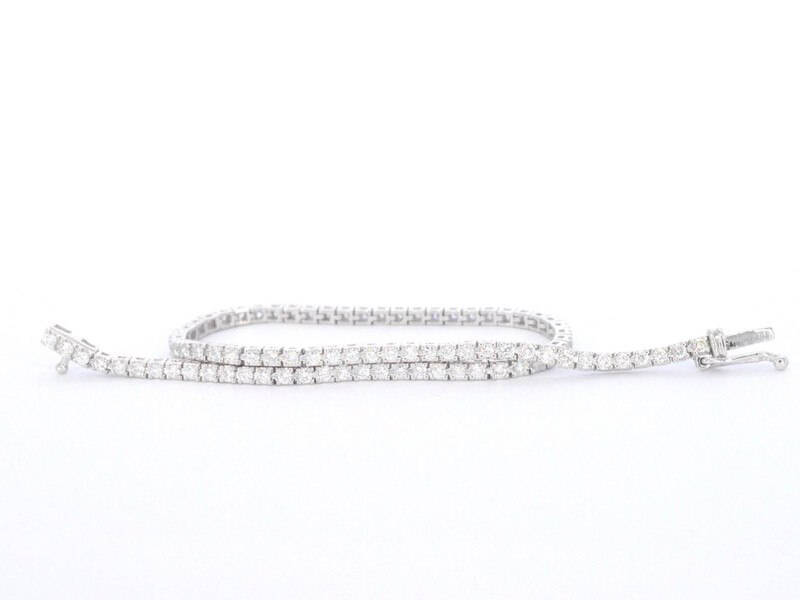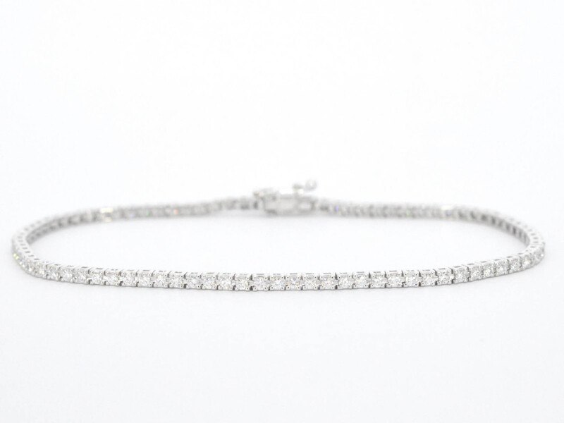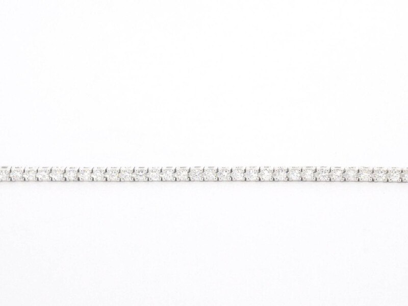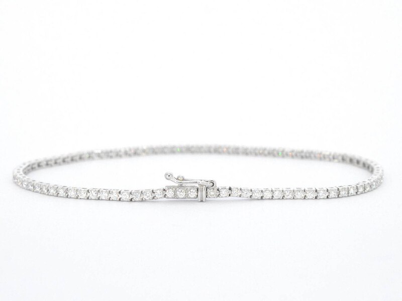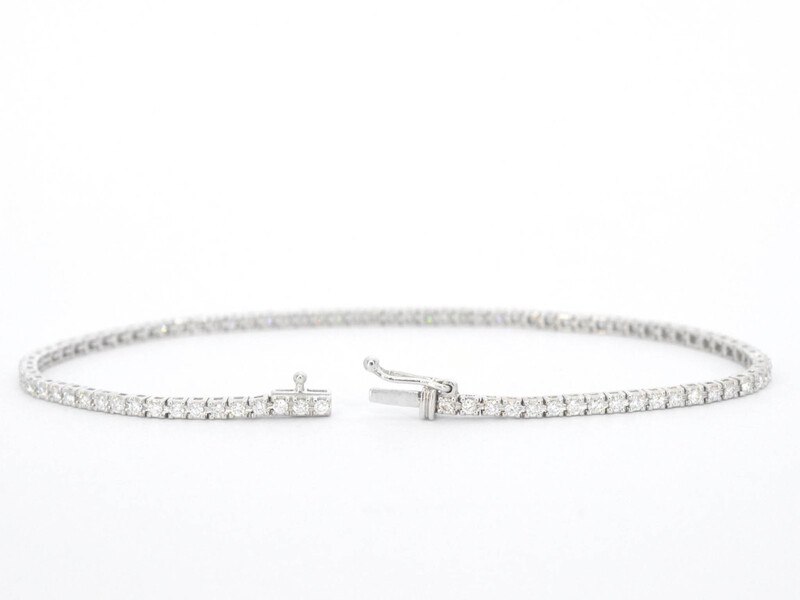Product: Witgouden armband met diamanten 1.20 carat Specificaties: Diamant: Natuurlijk Aantal: 87 stuks Slijpvorm: Briljant geslepen Gewicht (carat): 1.20 carat Kleur: F-G Zuiverheid: VS-SI Slijpkwaliteit: Goed Juweel: Armband Gewicht: 5.6 gram Afmetingen/lengte: 17.8 cm Materiaal: 14k goud (585) Conditie: Nieuw Verpakking: Luxe sieradendoos Toelichting: De kwaliteit is overgenomen van het rapport behorend bij item. De waardebepaling is een beoordeling van een gecertificeerde diamantair, gebaseerd op consumentenprijzen. Consumentenprijs: € 5.005,-