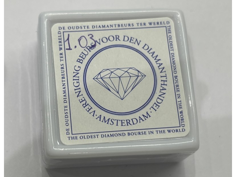 Product: Diamant - 1.03 carat briljant geslepen diamant Specificaties: Diamant: Natuurlijk Slijpvorm: Briljant Gewicht (carat): 1.03 carat Kleur: Geel (enhanced) Zuiverheid: Hoge zuiverheidsgraad Slijpkwaliteit: Heel mooi Conditie: Nieuw Verpakking: Edelsteendoos Toelichting: De kwaliteit is overgenomen van het rapport behorend bij item. De waardebepaling is een beoordeling van een gecertificeerde diamantair, gebaseerd op consumentenprijzen. Consumentenprijs: € 2.500,-