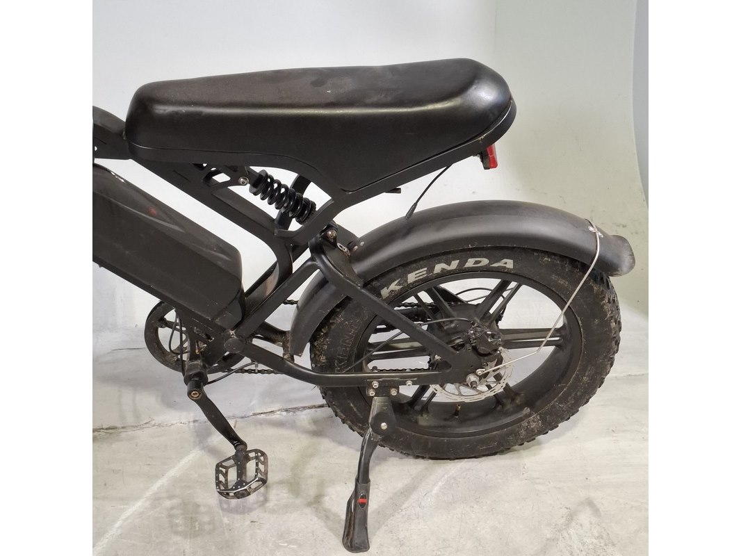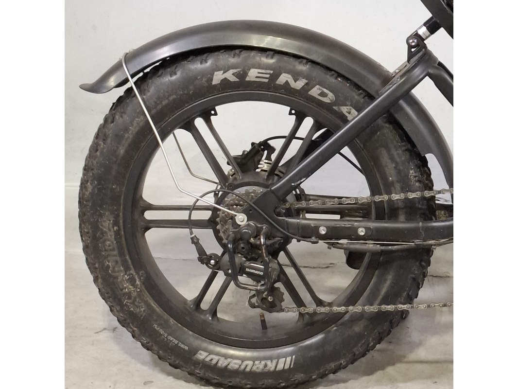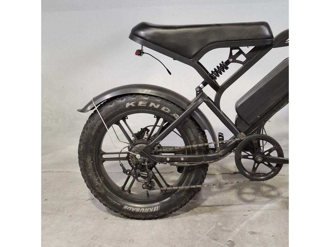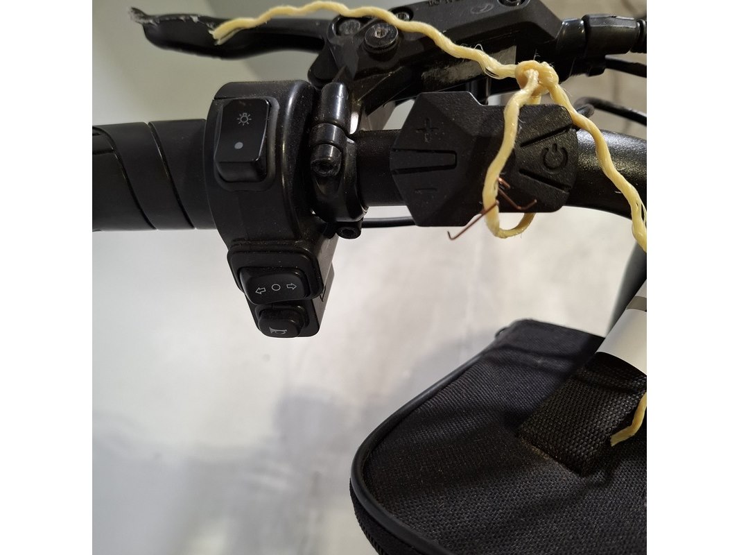 Product: Fatbike Conditie: gebruikt Specificaties: 7 versnellingen Geveerde voorvork Geveerde achterbrug Schijfremmen voor en achter Inclusief accu en fietscomputer Accu staat op slot, laadpunt beschadigd Slot accu beschadigd Remklauw voor beschadigd Exclusief sleutel