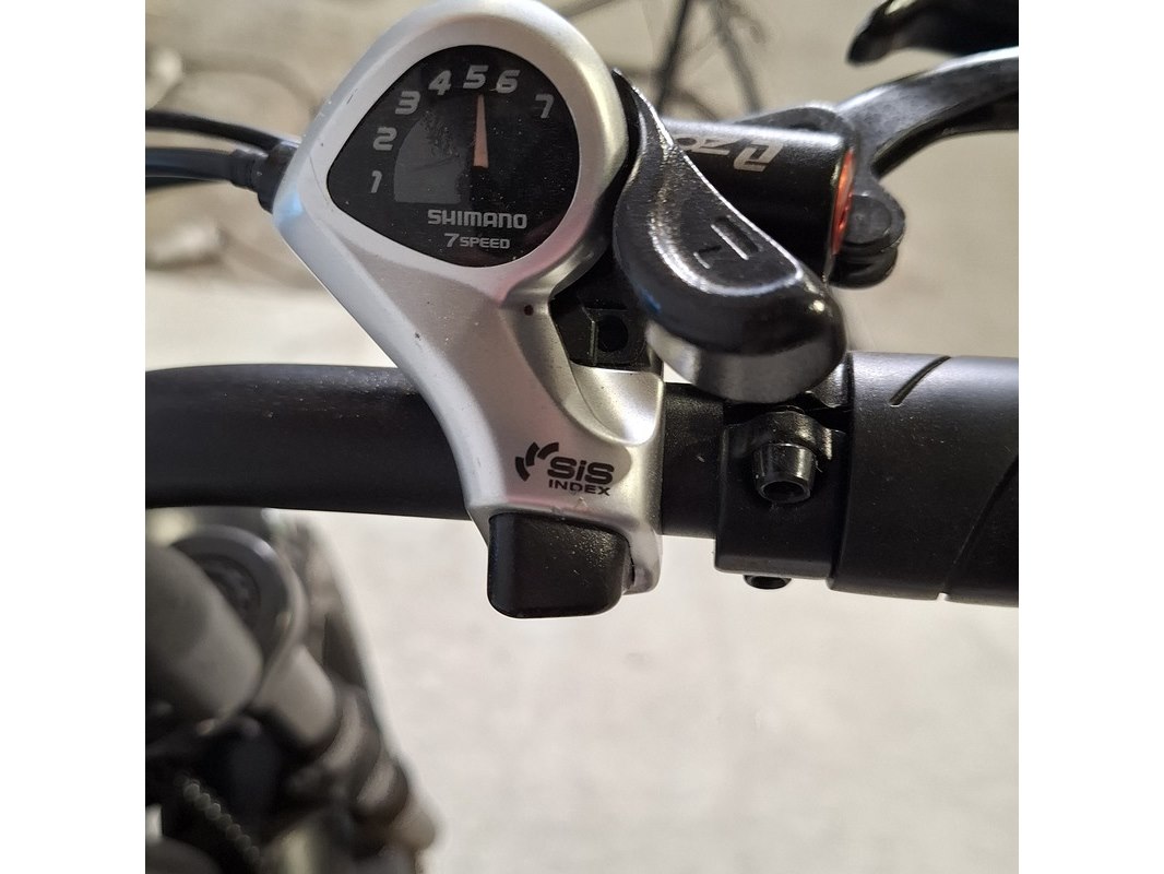 Product: Fatbike Conditie: gebruikt Specificaties: 7 versnellingen Geveerde voorvork Geveerde achterbrug Schijfremmen voor en achter Inclusief accu en fietscomputer Accu staat op slot Gaat niet aan Aan / uit schakelaar beschadigd Trappers beschadigd Diverse gebruikssporen rondom Display zit los