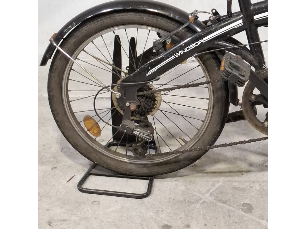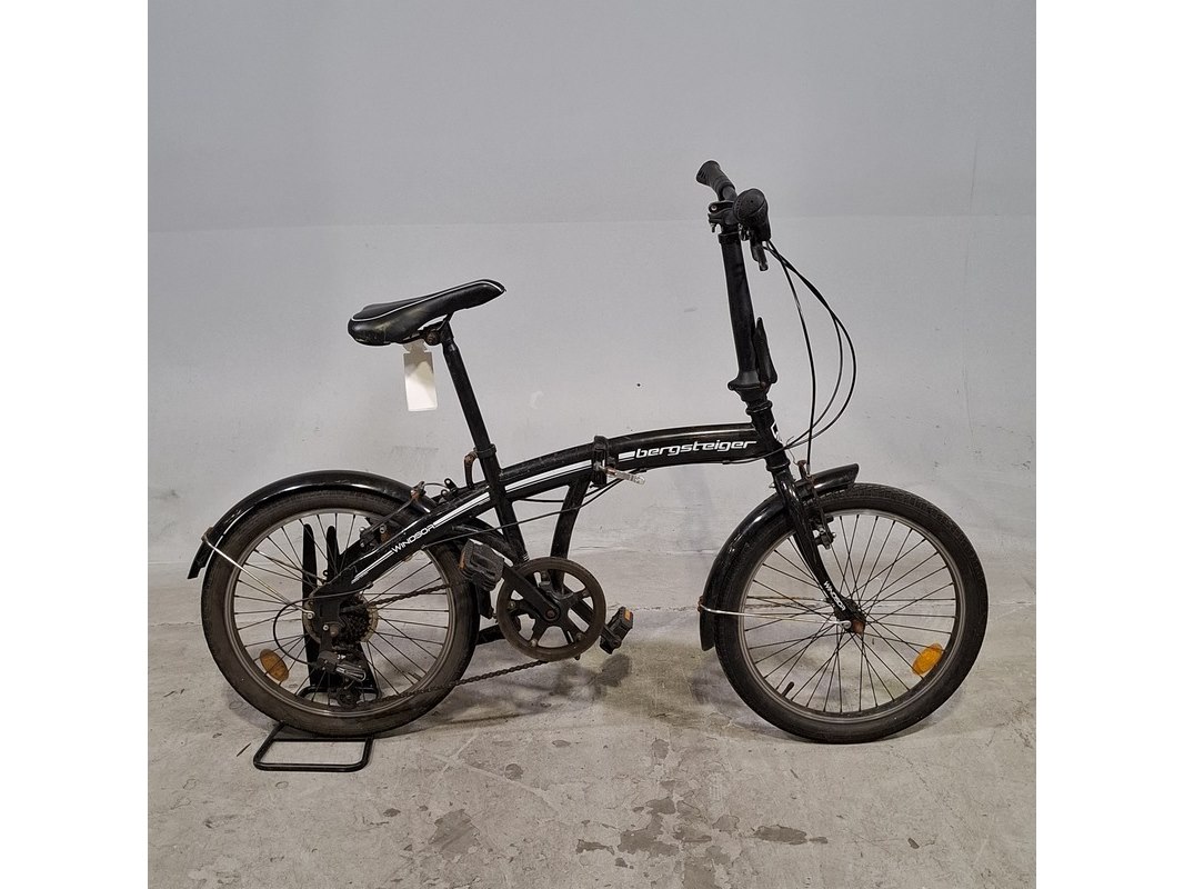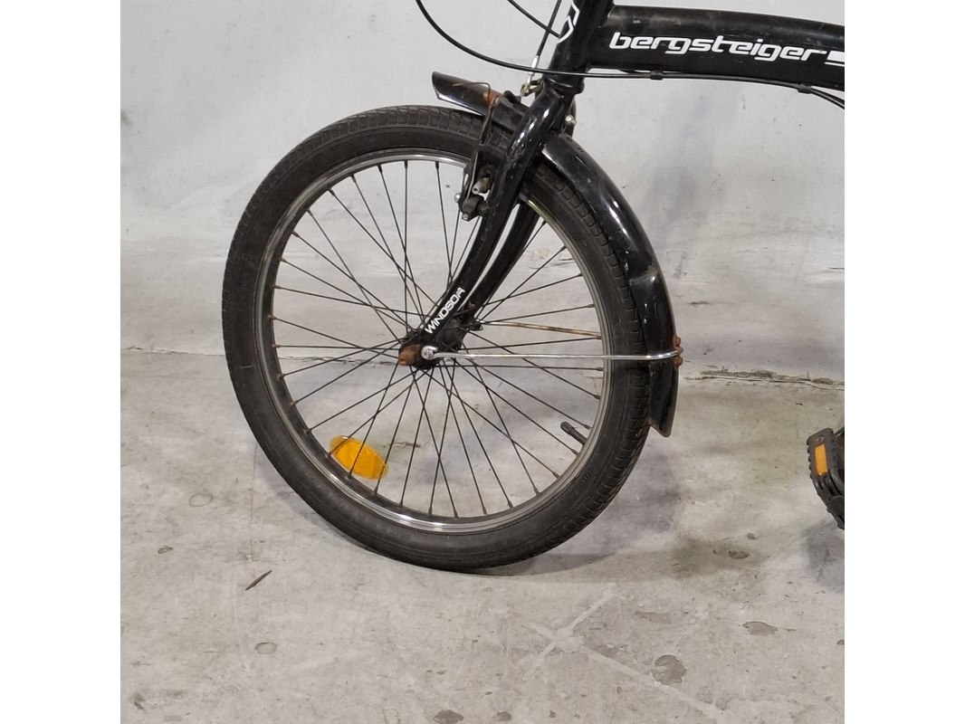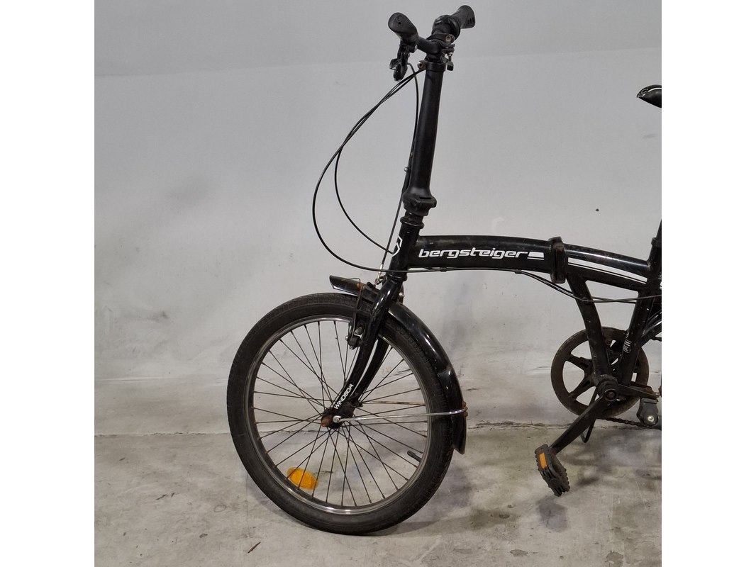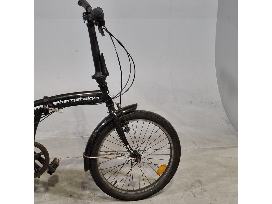 Merk: Bergsteiger Product: Vouwfiets Afmeting: Framemaat ca. 31 cm Specificaties: 6 versnellingen. Linker hand rem defect Stuur pen zit los. Standaard afgebroken, ontbreekt