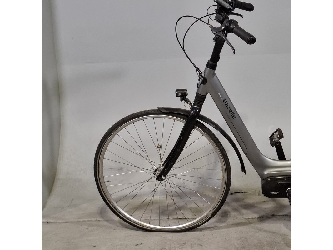 Merk: Gazelle Product: Elektrische damesfiets Afmeting: Framemaat ca. 47 cm. BouwJaar: 2017 Conditie: gebruikt Specificaties: 7 versnellingen Geveerde voorvork Geveerde zadelpen Banden leeg Shimano middenmotor Inclusief accu en fietscomputer Accu staat op slot Diverse beschadigingen op stuur, voorspatbord beschadigd Exclusief sleutel en acculader