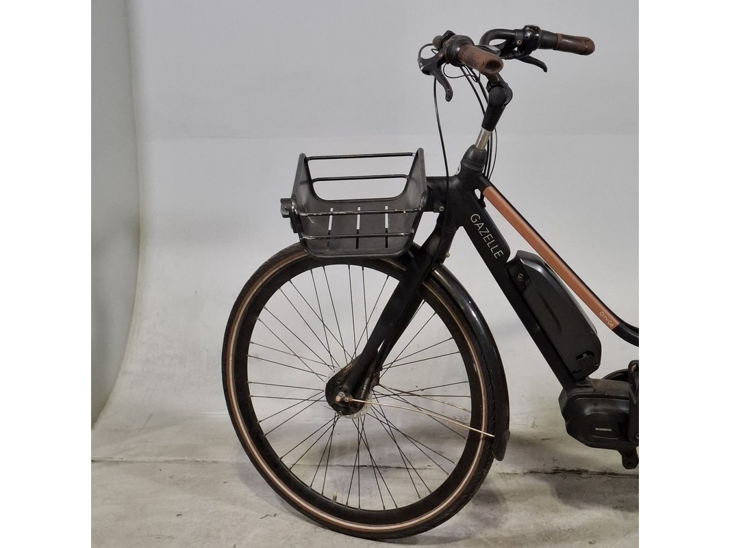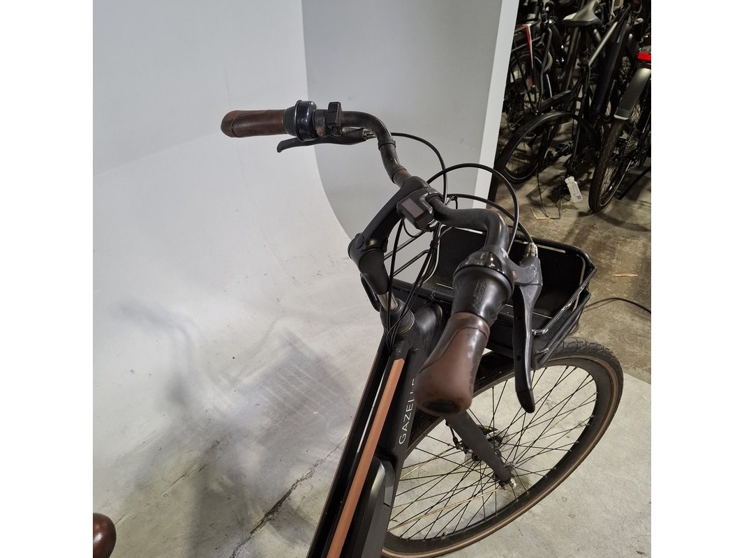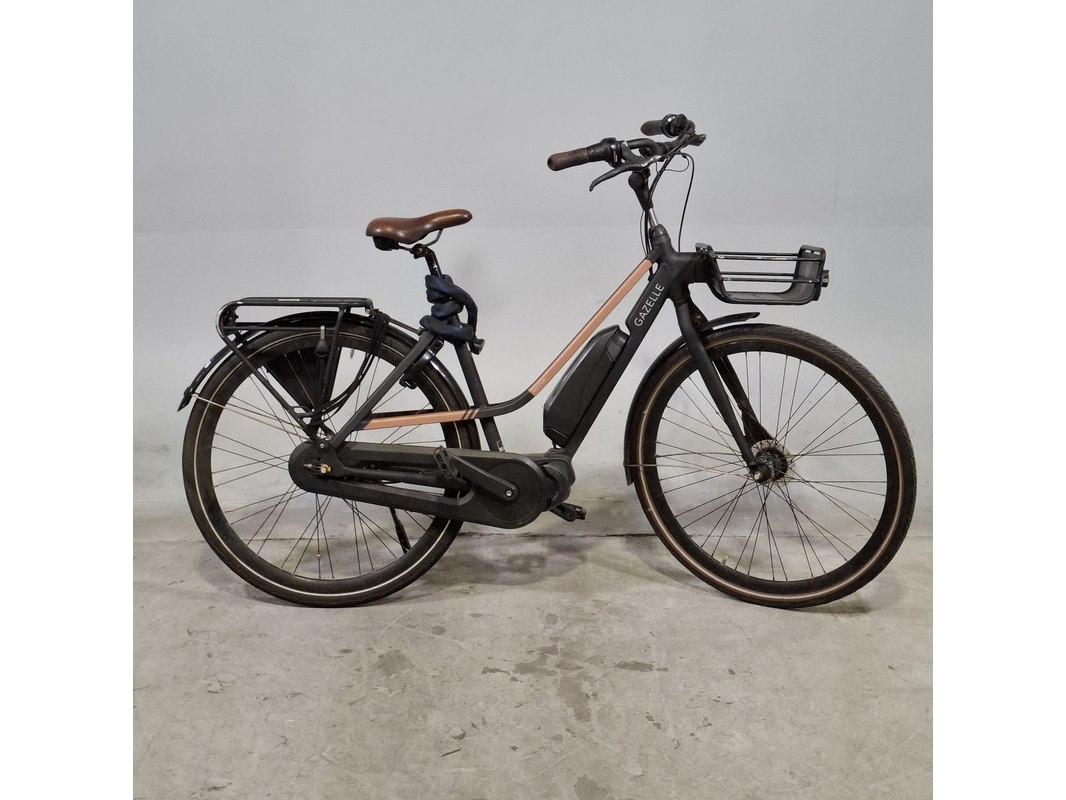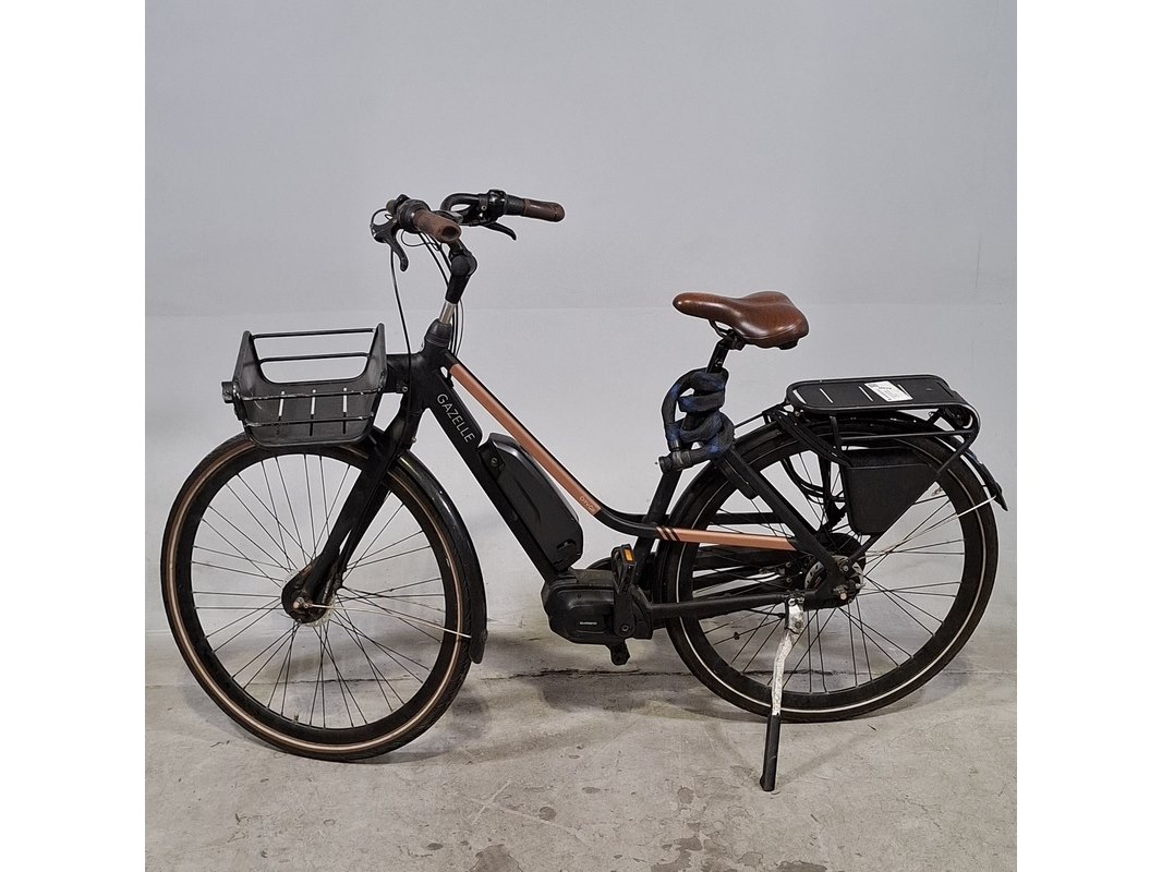 Merk: Gazelle Product: Elektrische damesfiets Afmeting: Framemaat ca. 50 cm. Conditie: gebruikt Specificaties: 7 versnellingen Shimano middenmotor Inclusief accu en fietscomputer Accu staat op slot Stuur roestig Exclusief sleutel en acculader