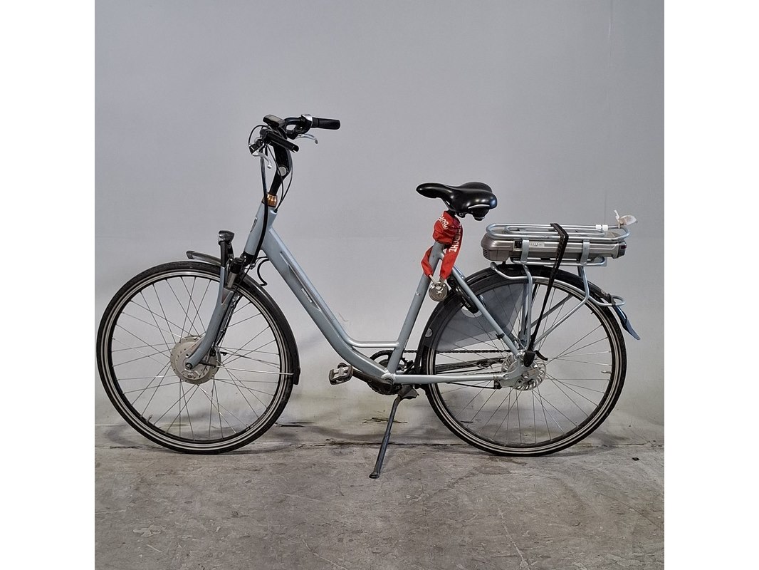 Merk: Batavus Product: Elektrische damesfiets Afmeting: Framemaat ca. 54 cm. Conditie: Gebruikt Specificaties: 7 versnellingen Geveerde voorvork Geveerde zadelpen Inclusief fietscomputer en accu Fiets gaat niet aan, bedieningskastje ontbreekt Voorwielmotor Exclusief acculader en sleutels Accu staat op slot, slot fiets doorgezaagd