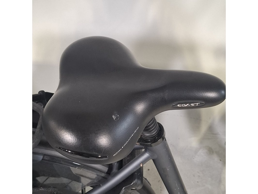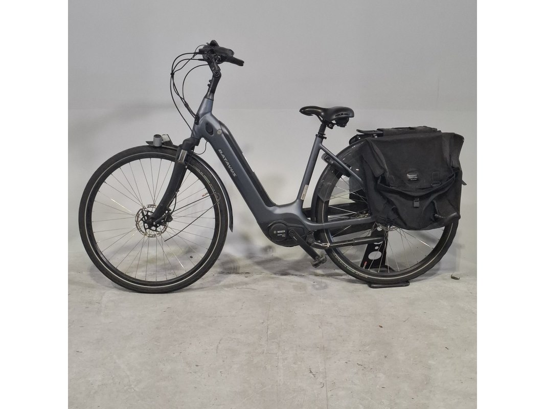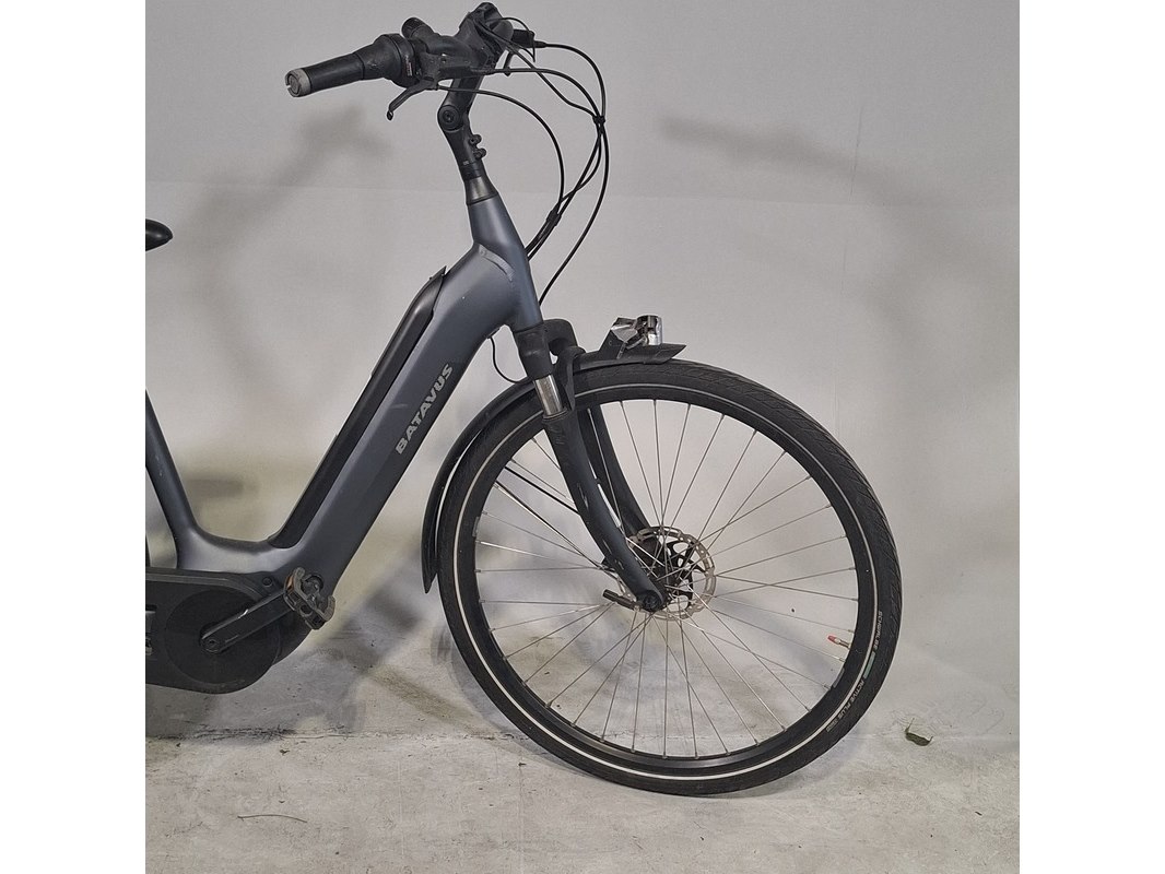 Merk: Batavus Product: Elektrische damesfiets Afmeting: Framemaat ca. 48 cm. Conditie: gebruikt Specificaties: 8 versnellingen Geveerde voorvork Geveerde zadelpen Inclusief accu, exclusief fietscomputer Accu staat op slot Fiets staat op slot Bosch Active Line Plus middenmotor Exclusief sleutels en acculader Voorspatbord beschadigd