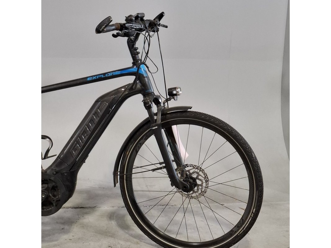 Merk: Giant Product: Elektrische herenfiets Afmeting: Framemaat ca. 53 cm Specificaties: Geveerde voorvork 9 versnellingen schijfremmen voor en achter Inclusief fietscomputer Aanwezigheid accu onbekend: accu bak staat op slot Exclusief acculader en (accu) sleutel
