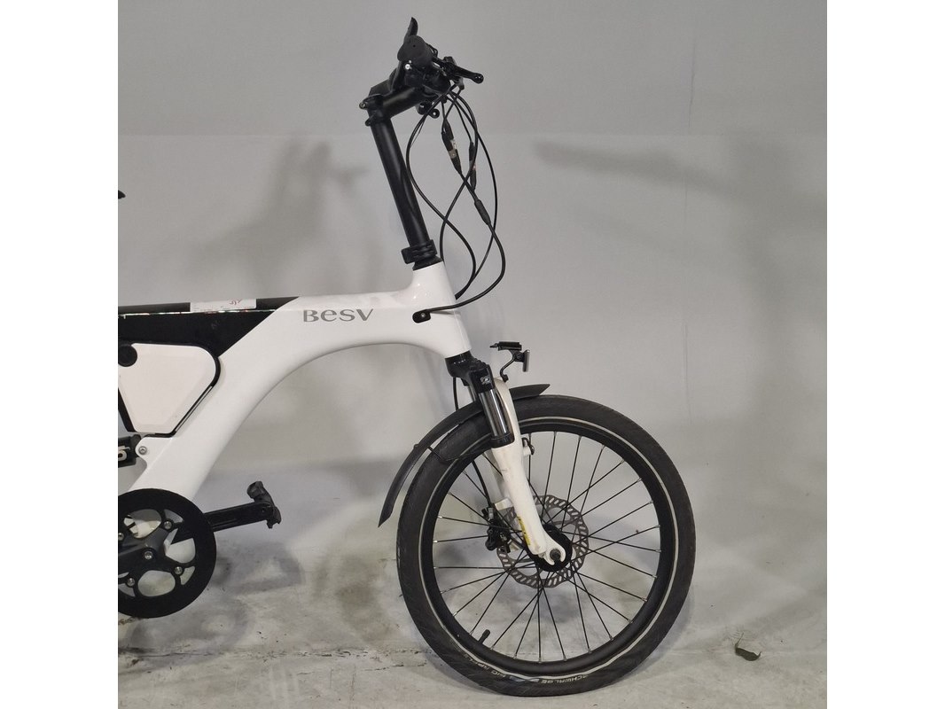 Merk: Besv Product: Elektrische herenfiets Afmeting: Framemaat ca. 47 cm. Conditie: gebruikt Specificaties: 7 versnellingen Geveerde voorvork Inclusief fietscomputer en accu Exclusief sleutels en acculader Afgelezen tellerstand: 363 Kapje schermpje ontbreekt Achterwielmotor
