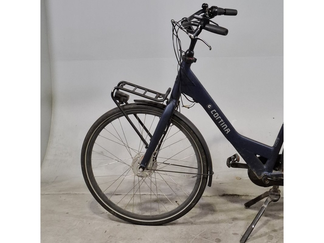 Merk: Cortina Product: Elektrische damesfiets Afmeting: Framemaat ca. 50 cm. Conditie: gebruikt Specificaties: 7 versnellingen Inclusief accu en fietscomputer Accu staat op slot Gaat niet aan Exclusief sleutel en acculader