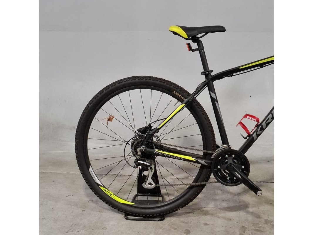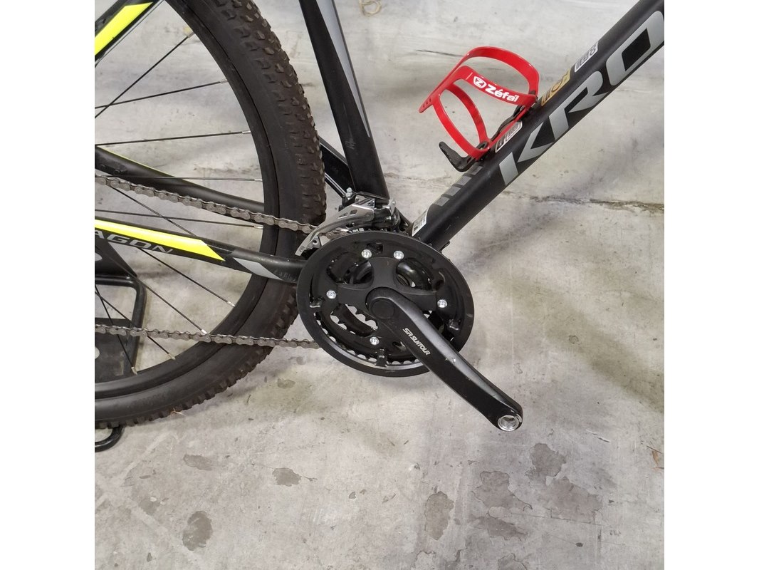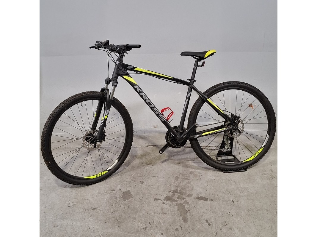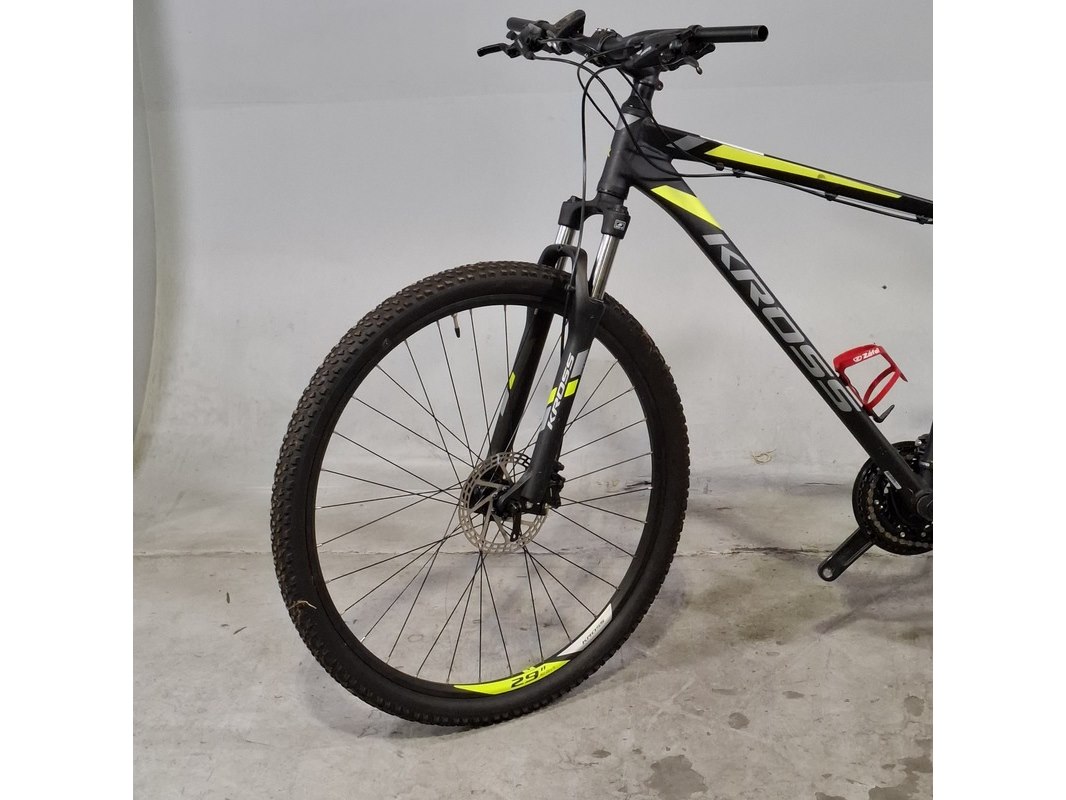 Merk: Kross Product: Mountainbike Afmeting: Framemaat ca. 48,5 cm. Conditie: gebruikt Specificaties: 3x8 versnellingen Geveerde voorvork Schijfremmen voor en achter Exclusief trappers