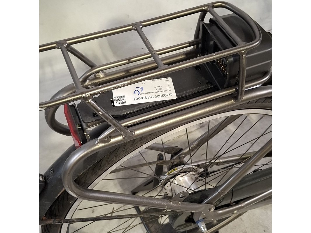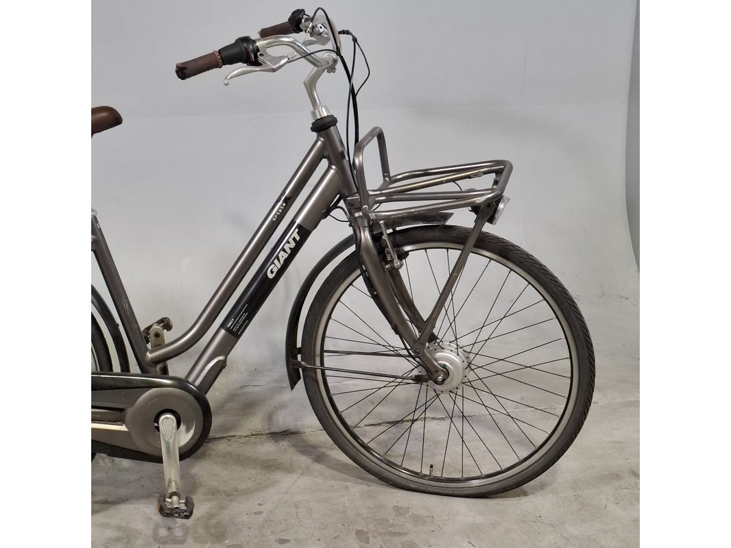Merk: Giant Product: Elektrische damesfiets Afmeting: Framemaat ca. 50,5 cm. Specificaties: 7 versnellingen Exclusief accu, acculader Accuslot ontbreekt