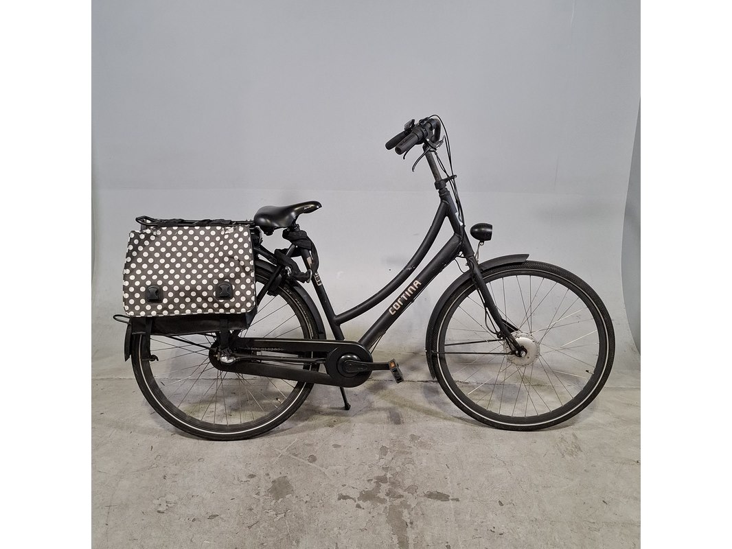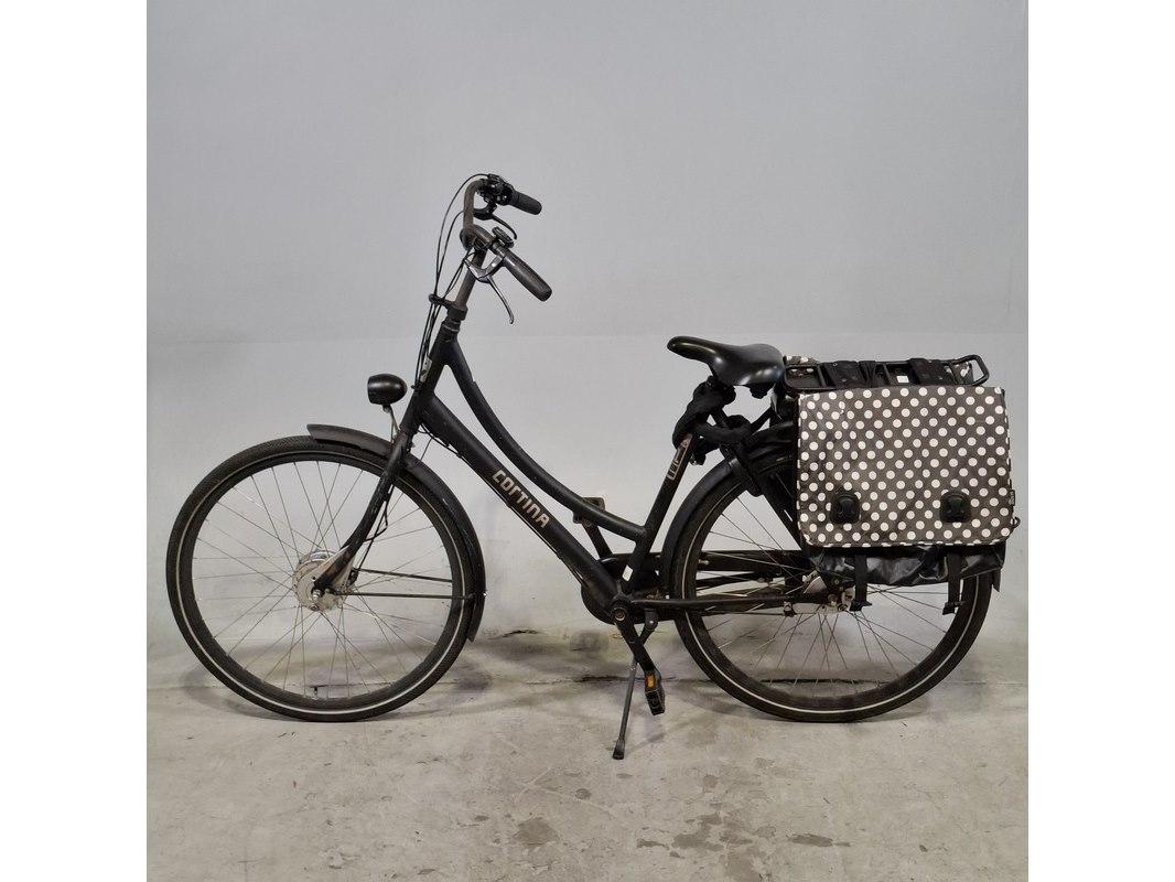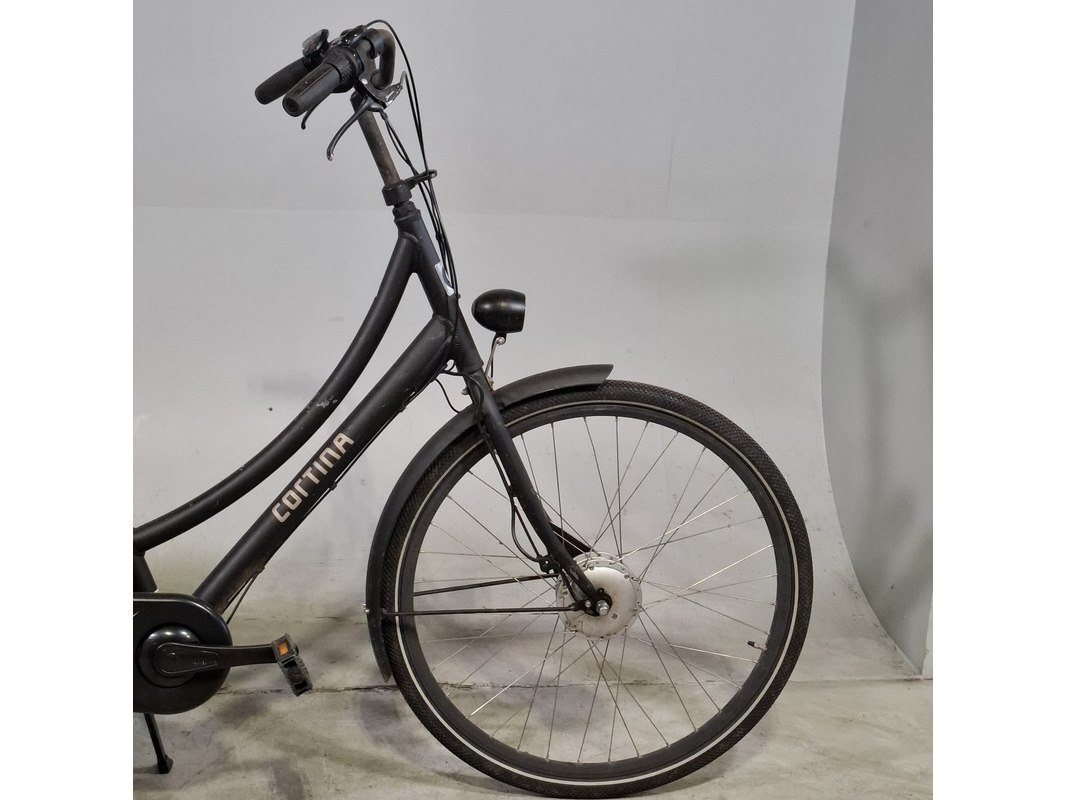 Merk: Cortina Product: Elektrische damesfiets Afmeting: Framemaat ca. 58 cm. BouwJaar: 2018 Conditie: gebruikt Specificaties: 3 versnellingen Inclusief accu en fietscomputer Achterwielmotor Fietscomputer beschadigd, accu staat op slot Exclusief acculader en sleutels