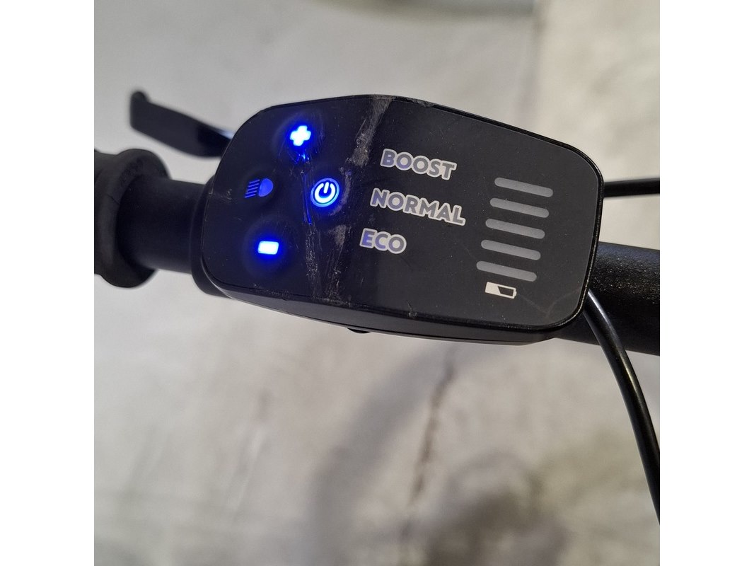 Merk: B'twin Product: Elektrische mountainbike Afmeting: Framemaat ca. 46,5 cm. Conditie: gebruikt Specificaties: 8 versnellingen Geveerde voorvork Schijfremmen voor en achter Aluminium frame Inclusief accu en fietscomputer Accu staat op slot Exclusief sleutels en oplader