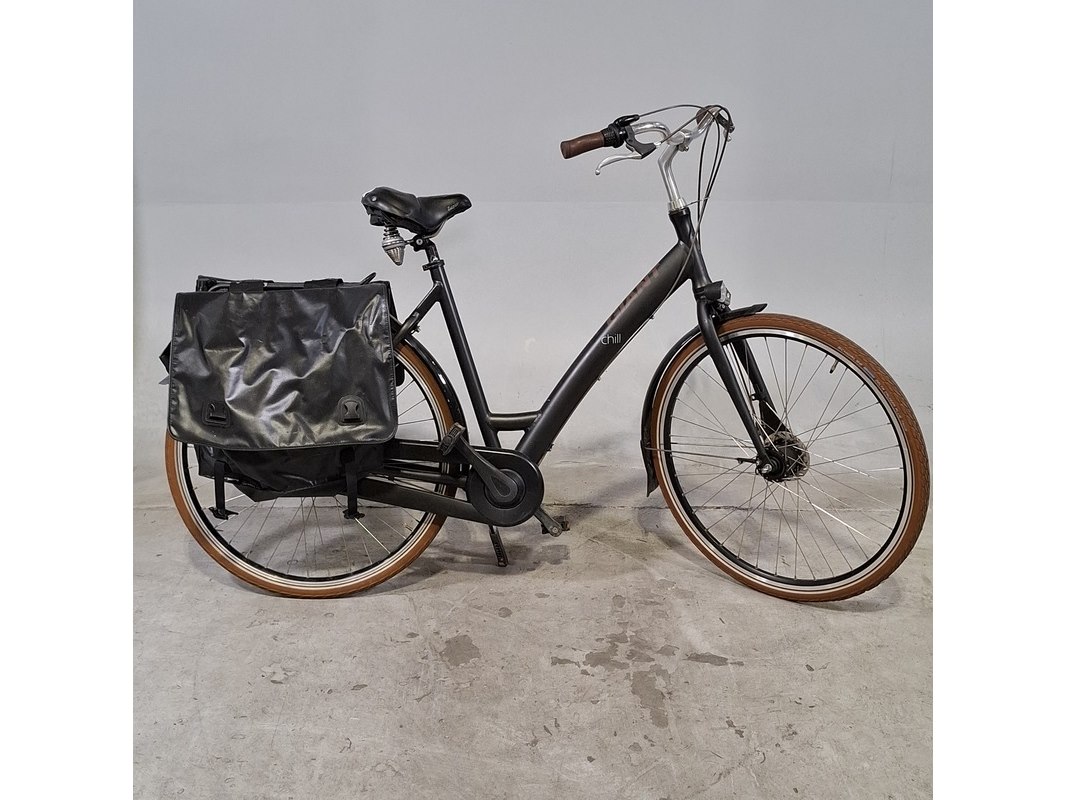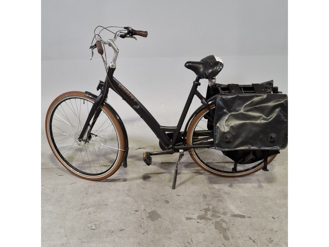 Merk: Giant Product: Elektrische damesfiets Afmeting: Framemaat ca. 54 cm Conditie: gebruikt Specificaties: 3 versnellingen Fietstassen