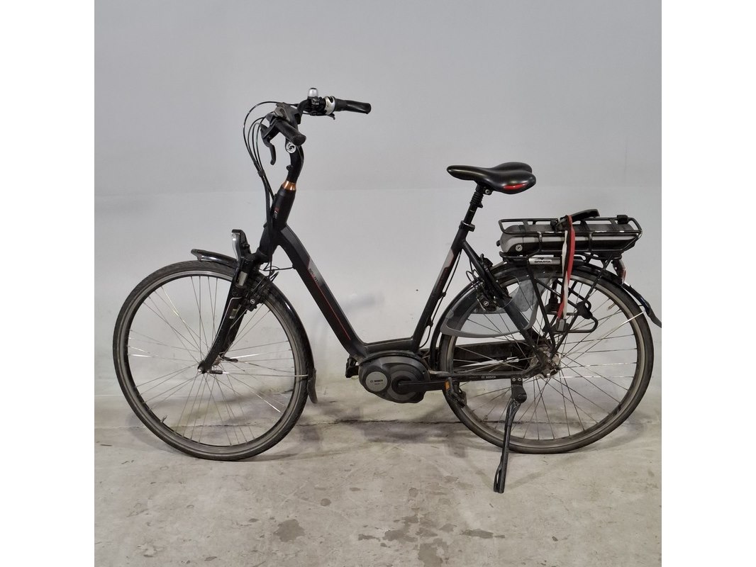 Merk: Sparta Product: Elektrische damesfiets Afmeting: Framemaat ca. 57 cm BouwJaar: 2017 Conditie: gebruikt Specificaties: 7 versnellingen Geveerde voorvork Geveerde zadelpen Bosch Active Line middenmotor Inclusief accu, accu staat op slot Slot ontbreekt Exclusief sleutels, acculader en fietscomputer
