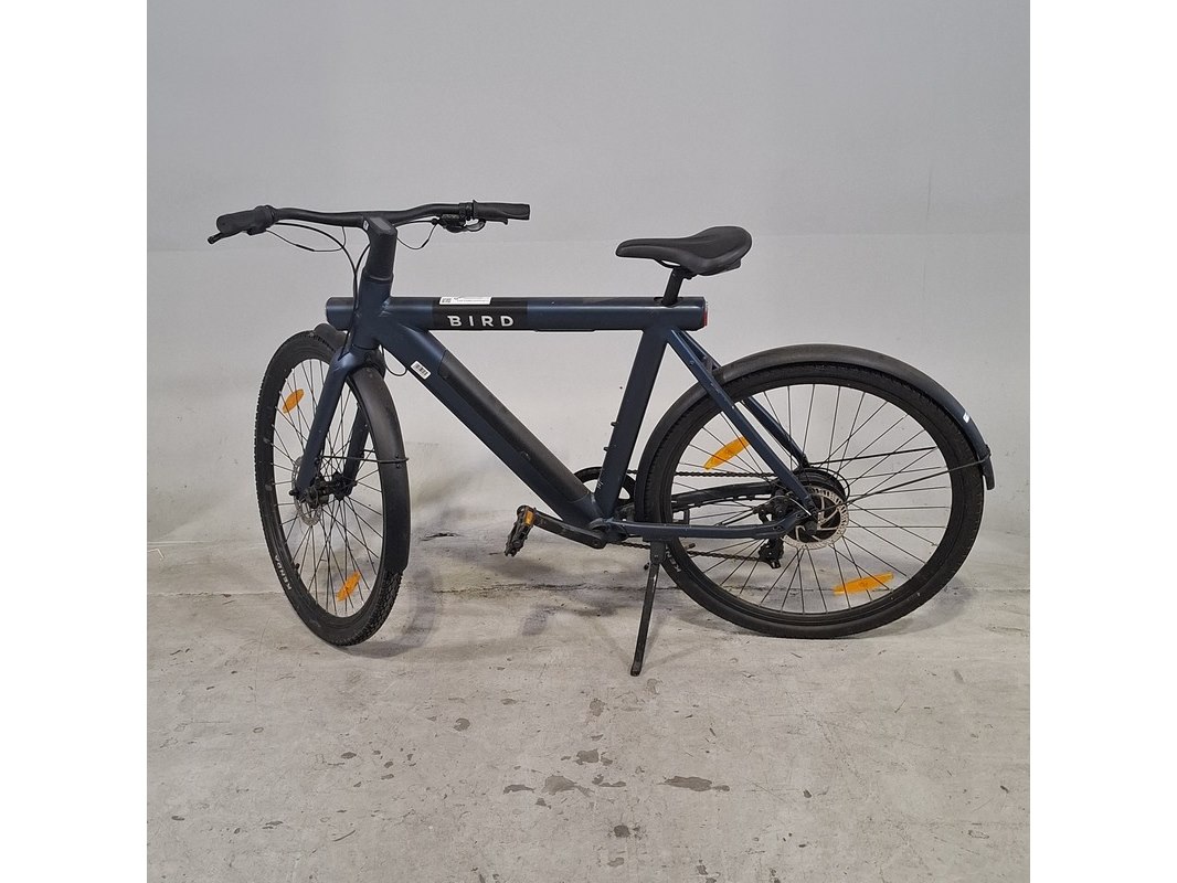 Merk: Bird Product: Elektrische herenfiets Afmeting: Framemaat ca. 56 cm Specificaties: 7 versnellingen Met achterwiel motor Aanwezigheid accu onbekend. Fiets gaat niet aan. Exclusief sleutel accubak, staat op slot.