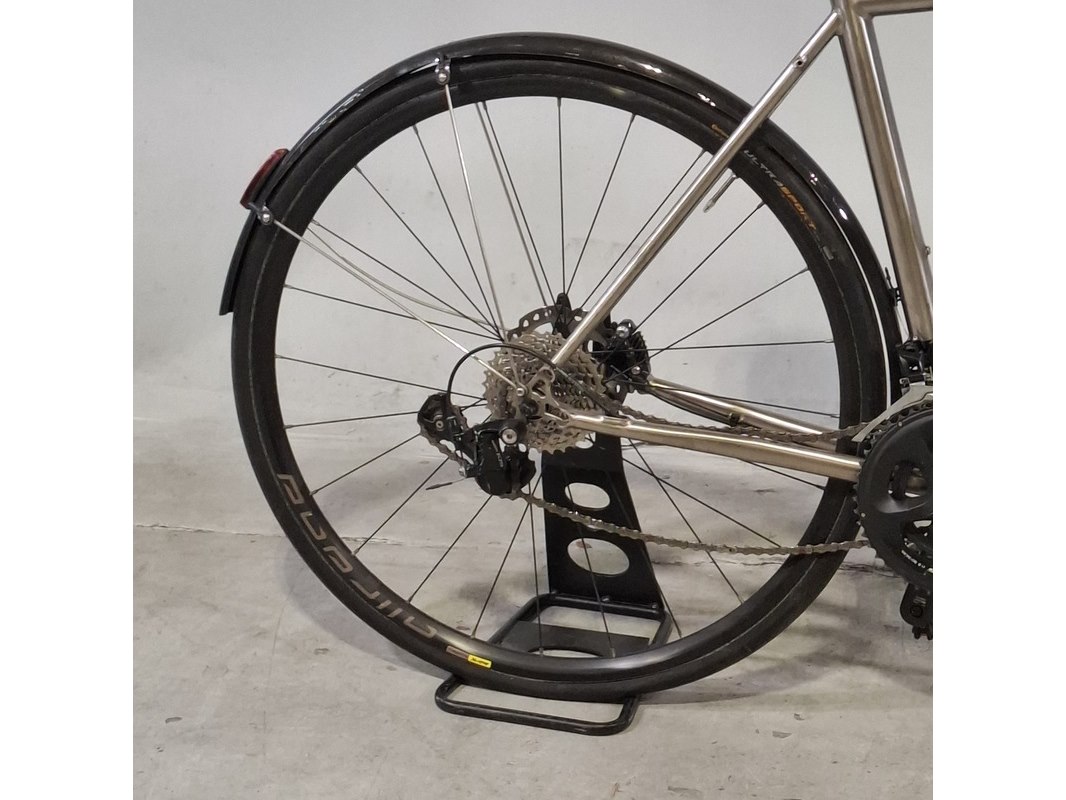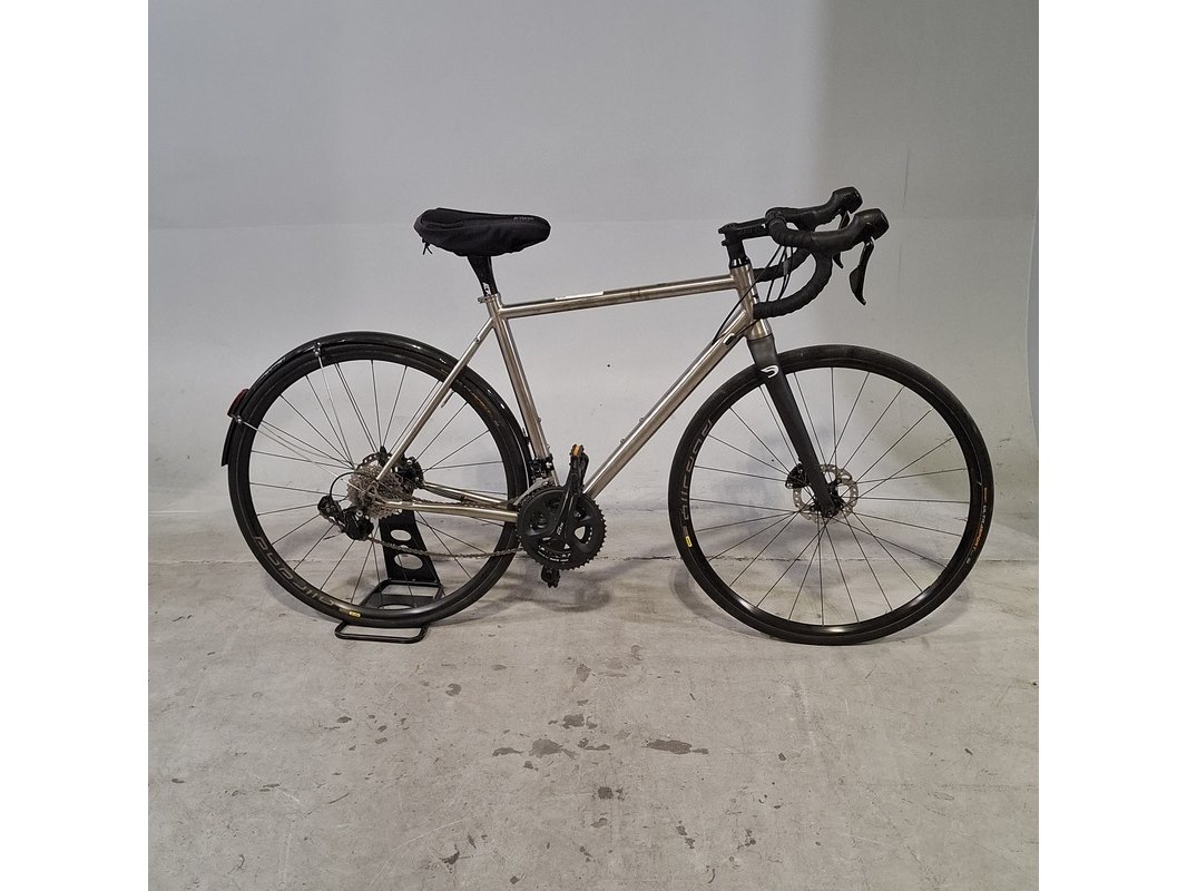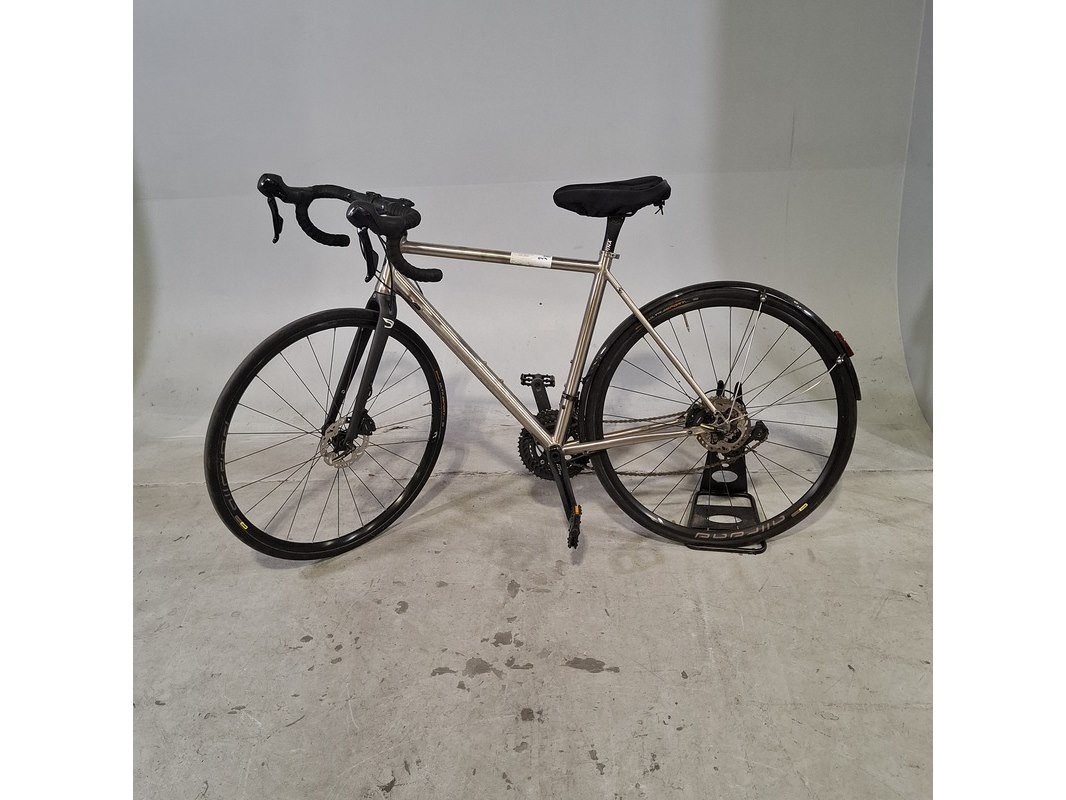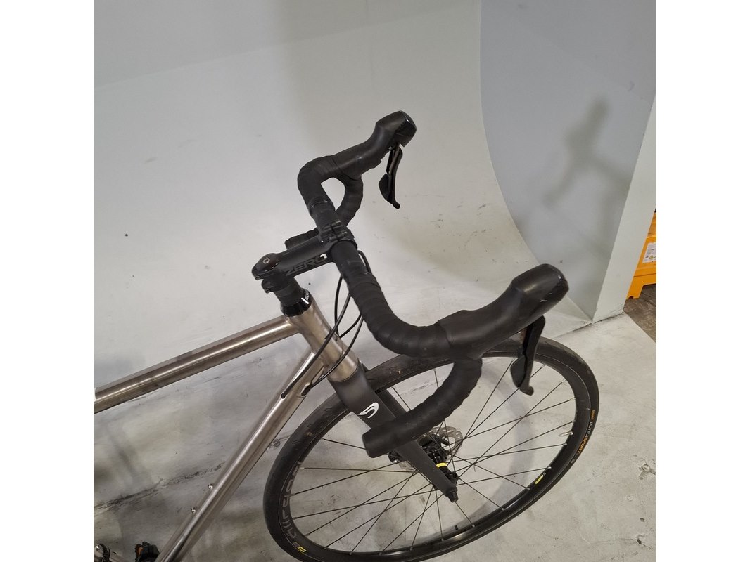 Merk: Dolan Product: Racefiets Afmeting: Framemaat ca. 53 cm Specificaties: Uitgerust met Shimano 105 groepset, 11 versnellingen Mavic allroad wielen Deda zero stuur Schijfrem voor en achter