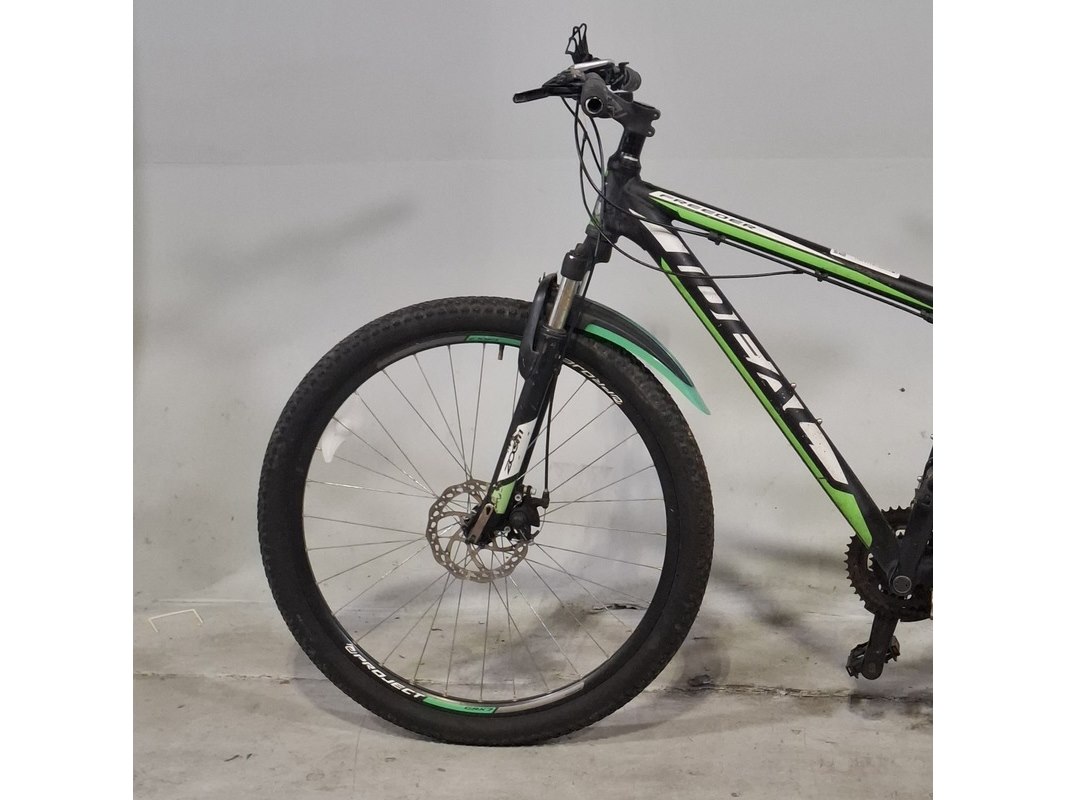 Merk: Ideal Product: Mountainbike Afmeting: Framemaat ca. 44 cm Specificaties: 3x7 versnellingen Geveerde voorvork Wielmaat 27,5 inch Standaard is lam.