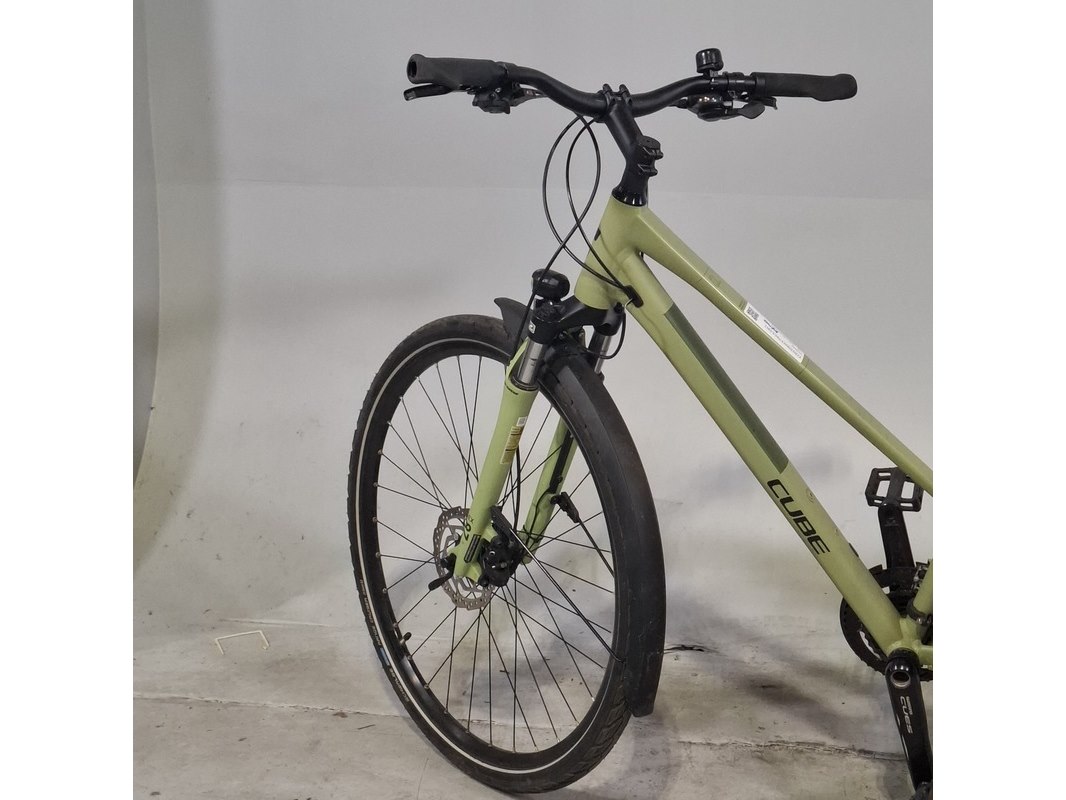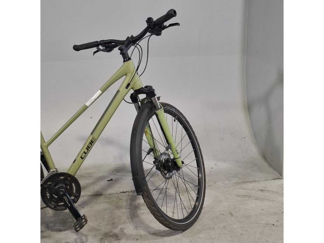 Merk: Cube Product: Damesfiets Afmeting: Framemaat ca. 50 cm Specificaties: 2x9 versnellingen Geveerde voorvork Inclusief fiets sleutels