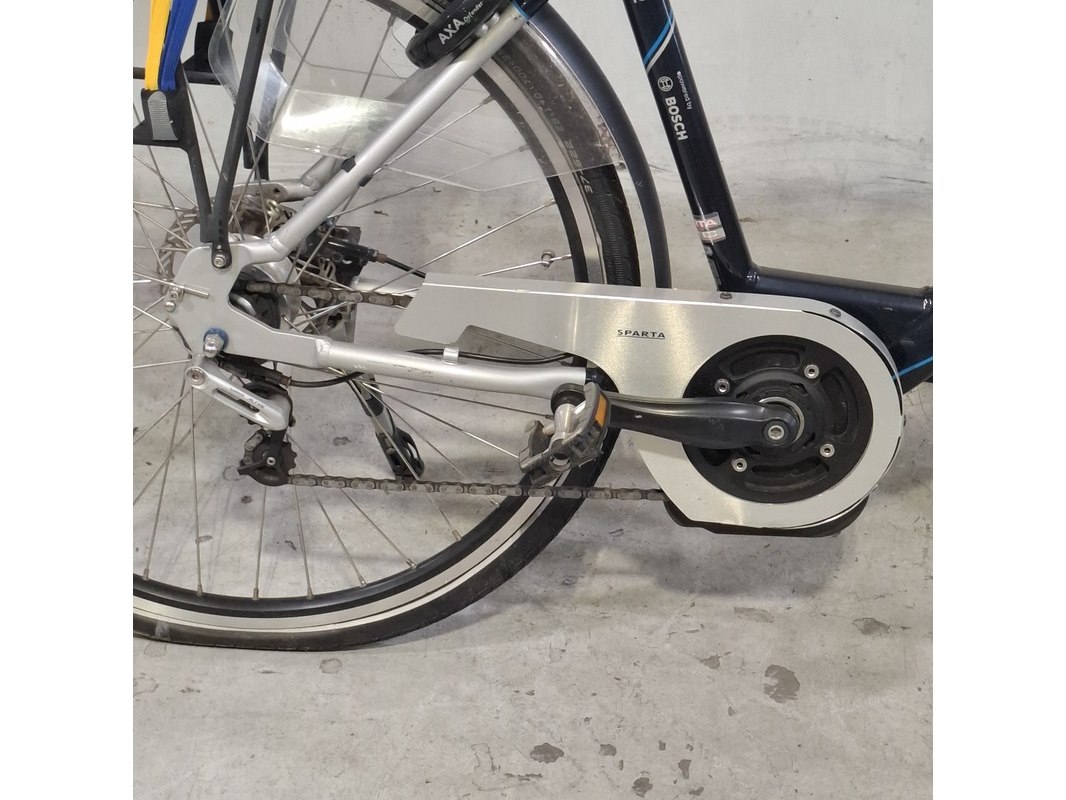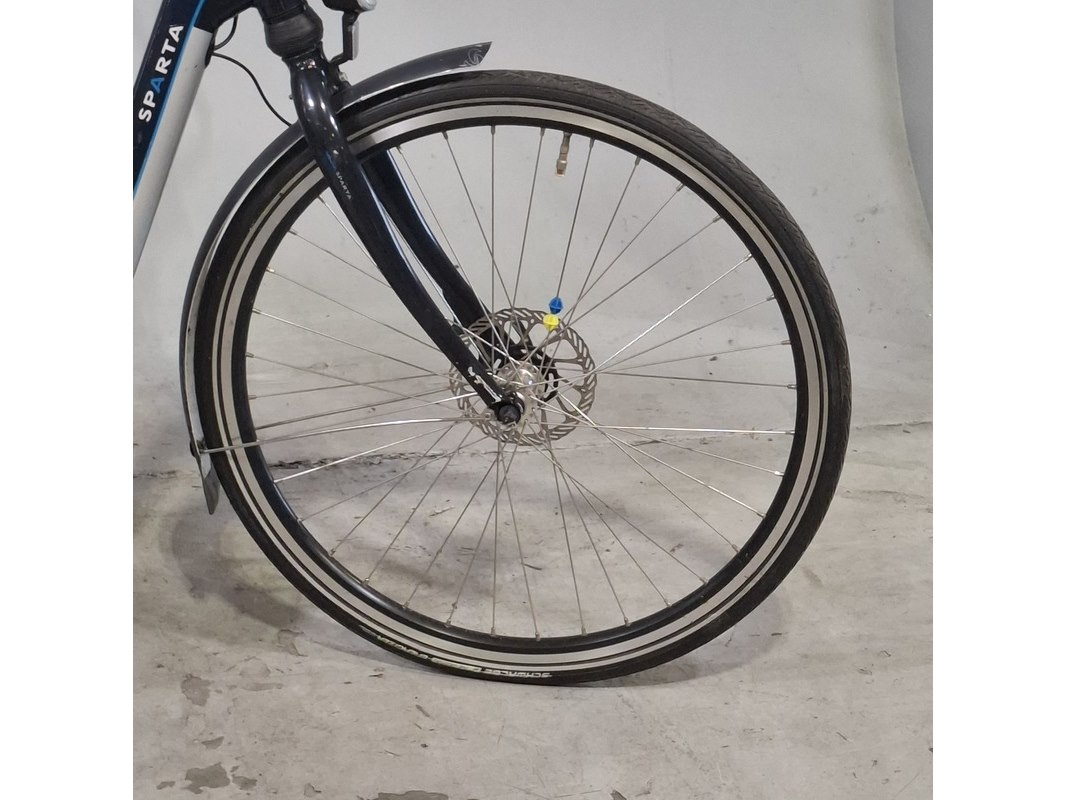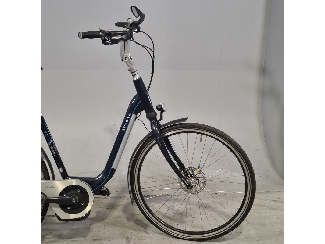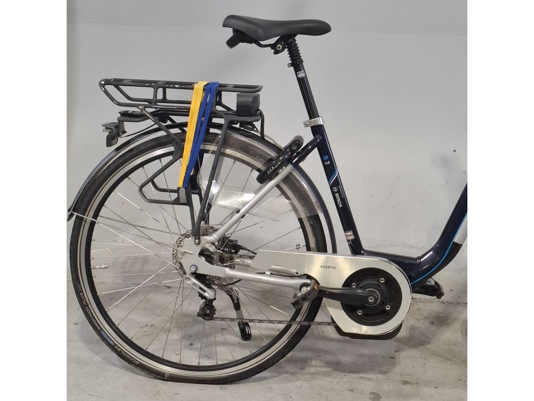 Merk: Sparta Product: Elektrische damesfiets Afmeting: Framemaat ca. 48 cm Specificaties: 8 versnellingen Geveerde voorvork en zadelpen Bosch middenmotor Exclusief fietscomputer, accu en sleutels. Fiets staat op slot. Acculader ontbreekt.