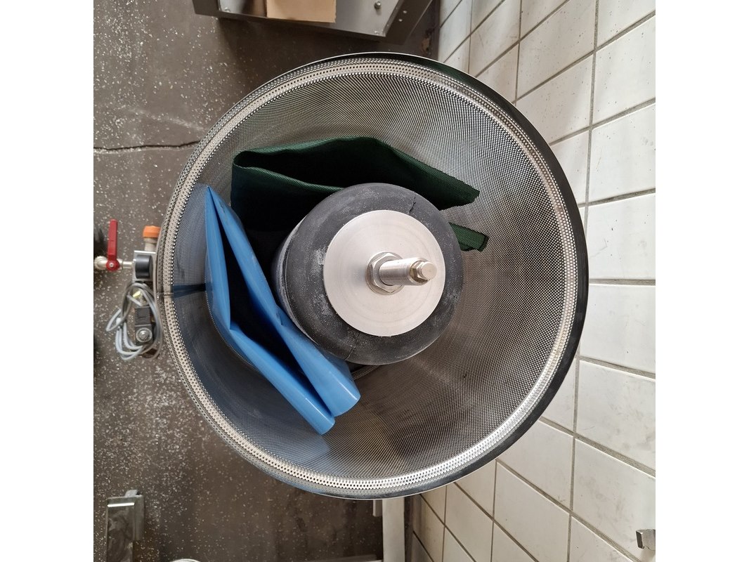Product: Membraam hydro-pers Materiaal: RVS Afmeting: hxd ca 110x49cm