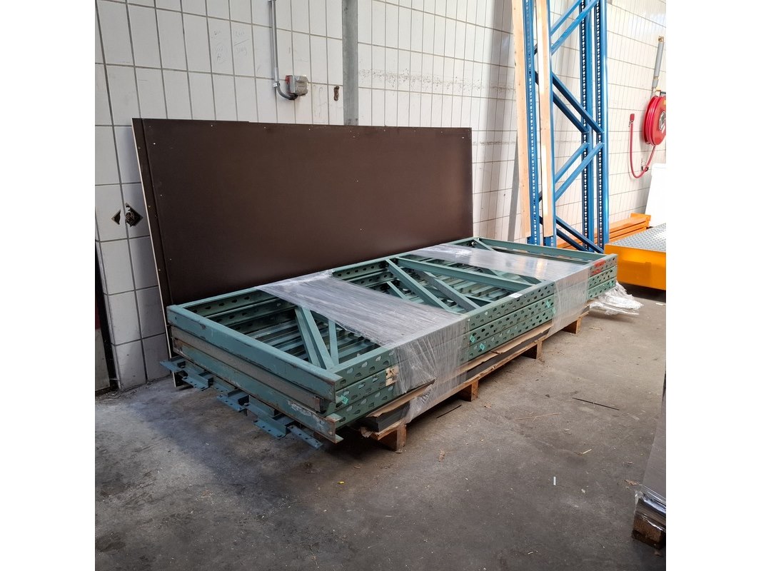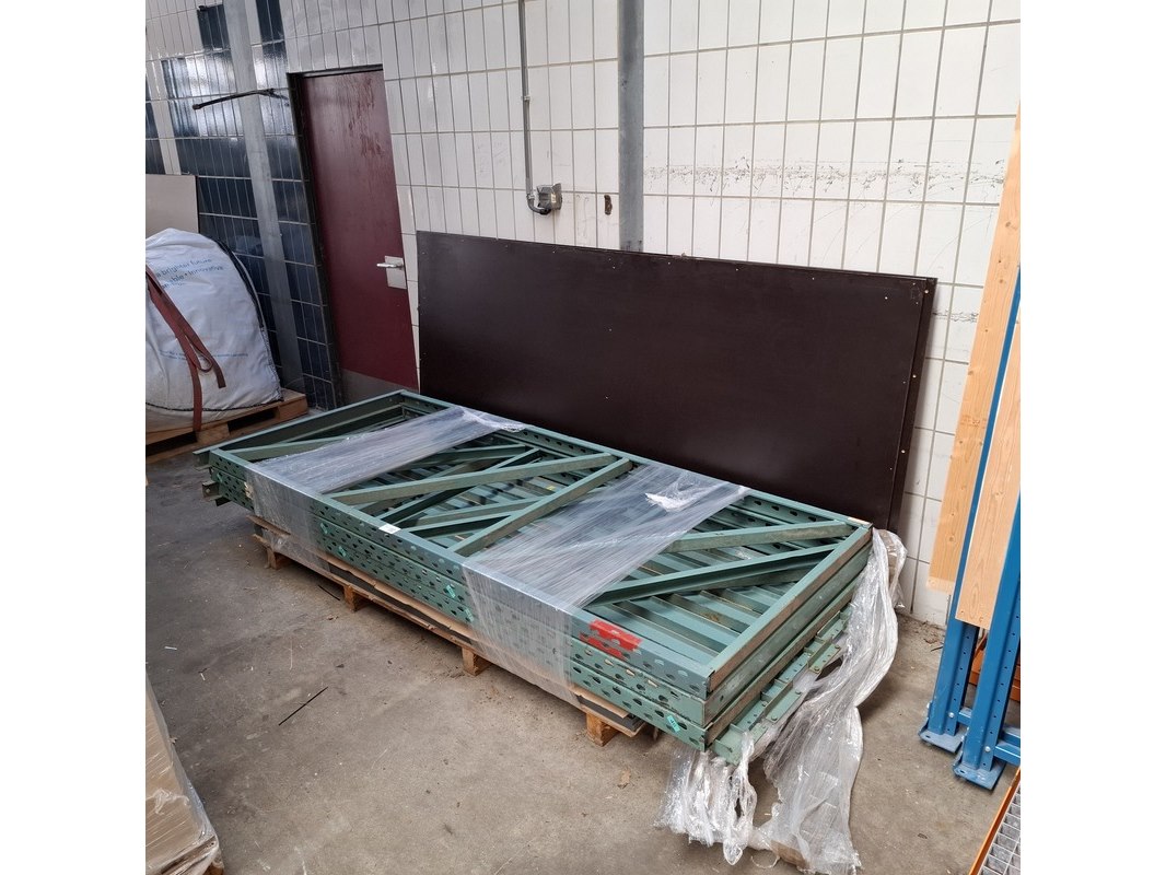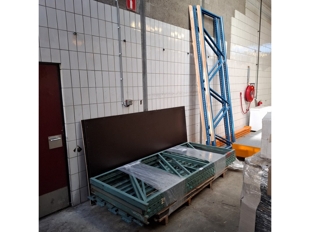 Product: Partij stellingmateriaal Specificaties: bestaande uit: 2x juk hxb ca. 351x210cm; 3x ligger ca 329cm; 3x juk hxb ca 254x107cm; 8x ligger lengte ca 260cm; 1x betonplex totale lxb ca 257x126cm (diverse platen aan elkaar geschroefd); 3x kunststof plaat lxbxd ca 200x101x2cm
