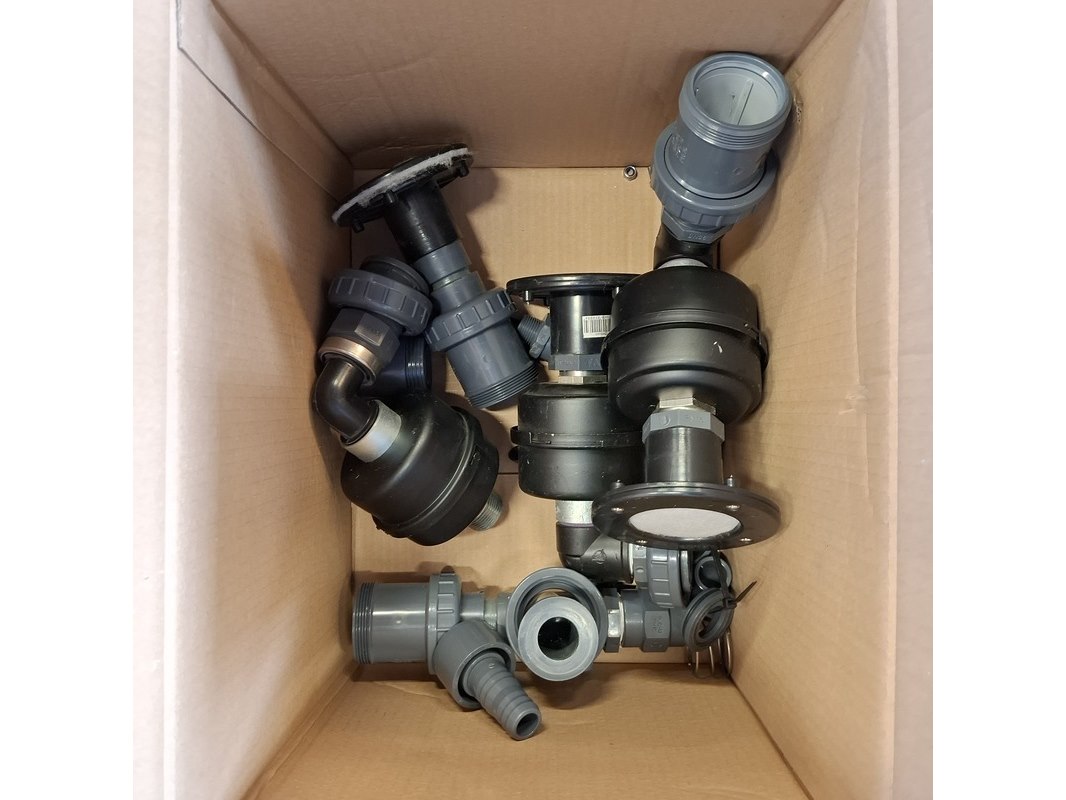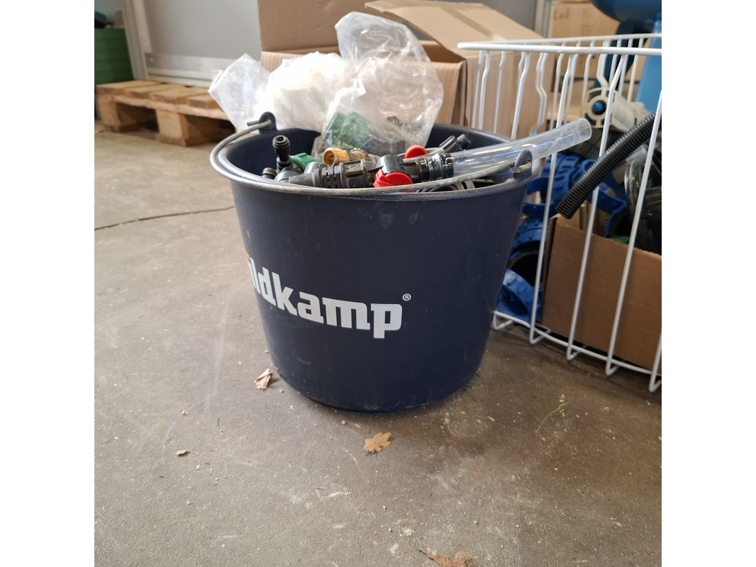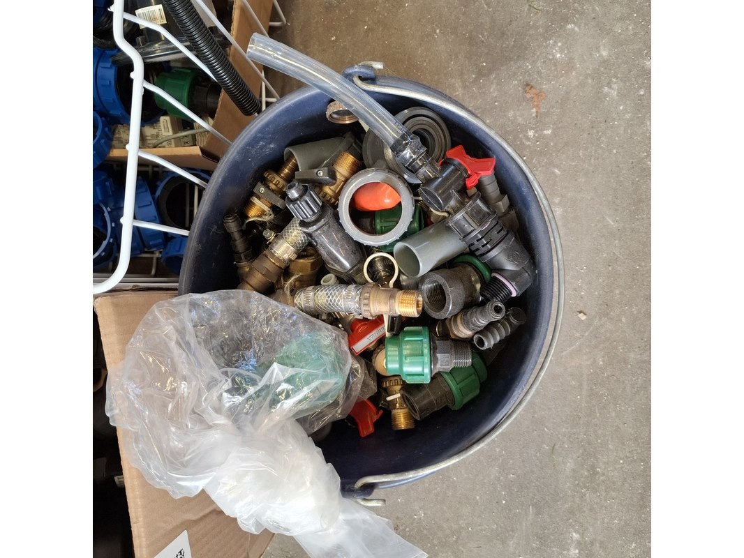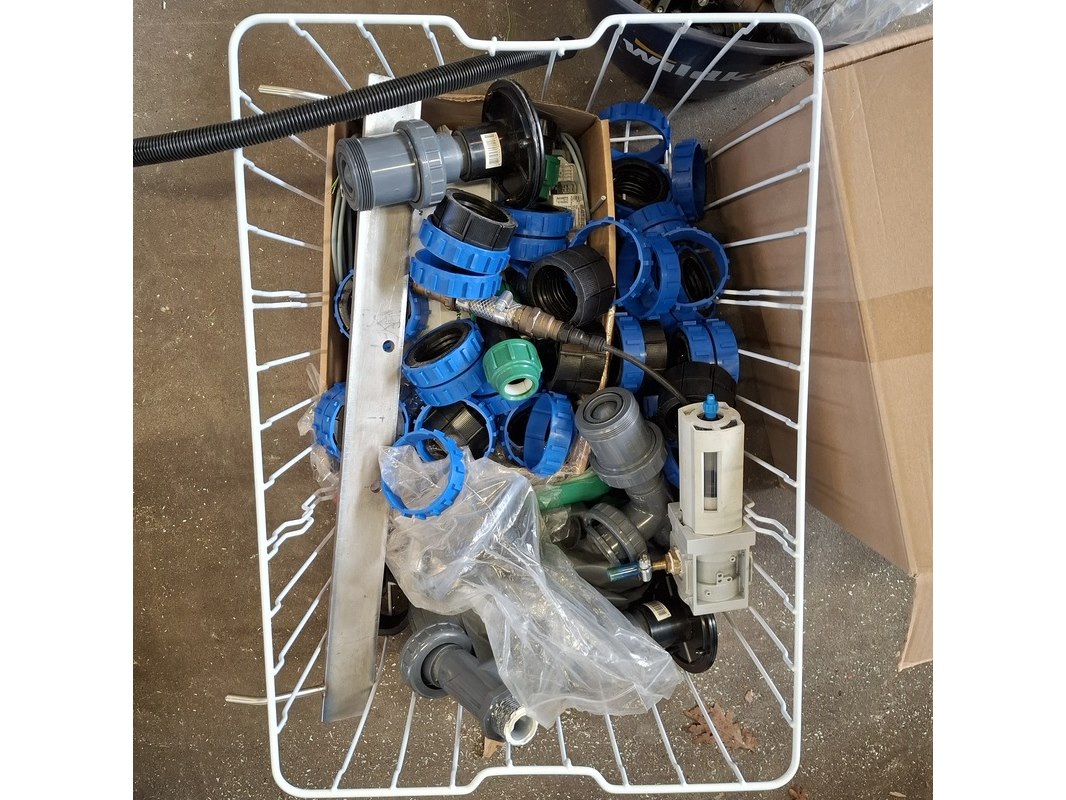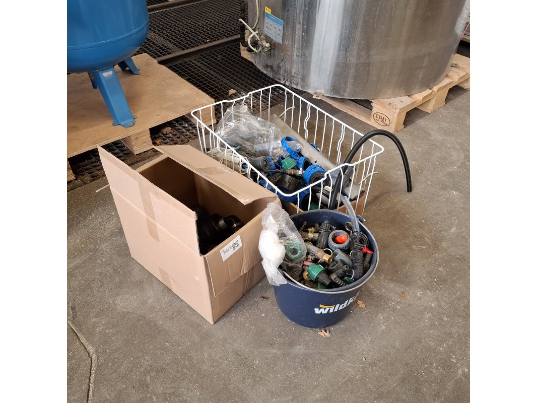 Product: Partij vnl. kunststof koppelingen en toebehoren Specificaties: bestaande uit: o.a. kogelkraan, slangtules, diverse soorten en maten