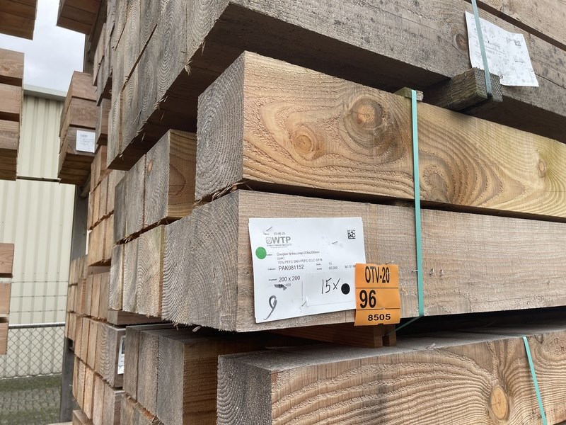 Ca. 9x douglas balken fijnbezaagd, 200x200mm, lengte 400cm