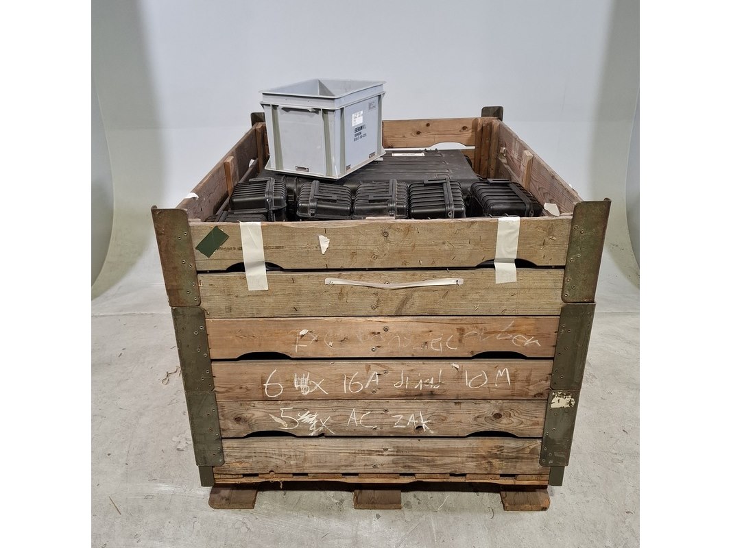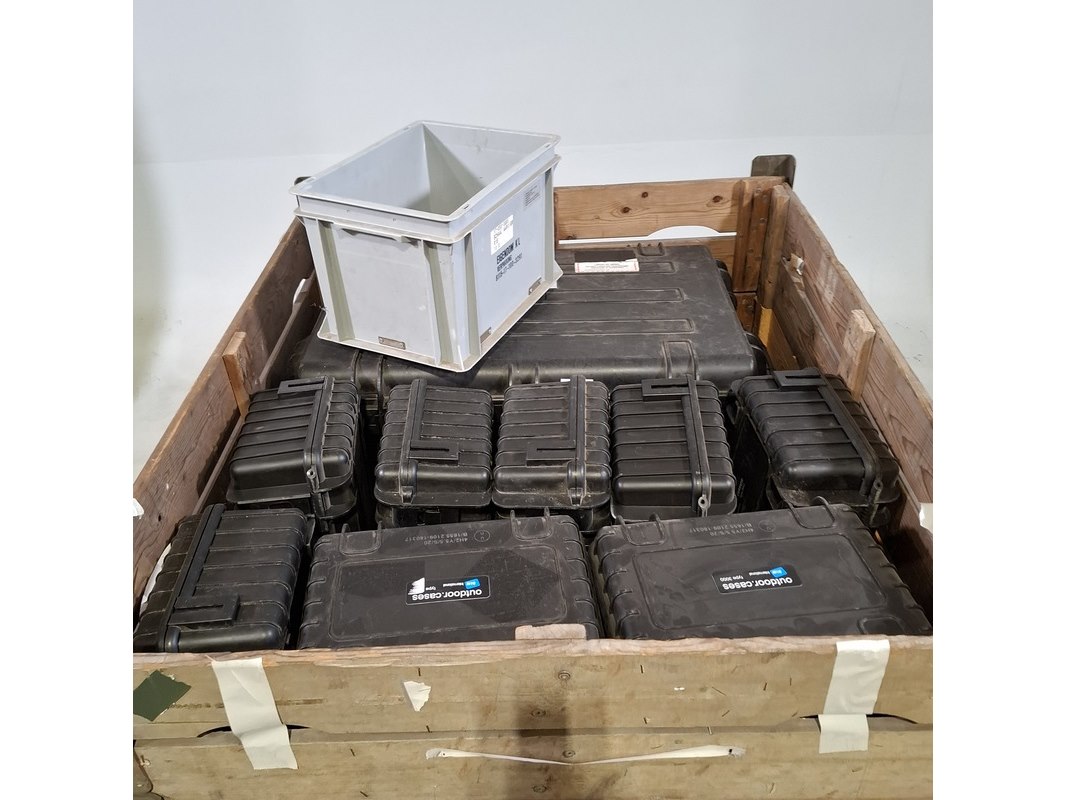 Merk: o.a B&W Product: Diverse transportkoffers Afmeting: Diverse maten Conditie: gebruikt Specificaties: De koffers hebben diverse beschadigingen. Technische staat en compleetheid onbekend. Exclusief palletkist