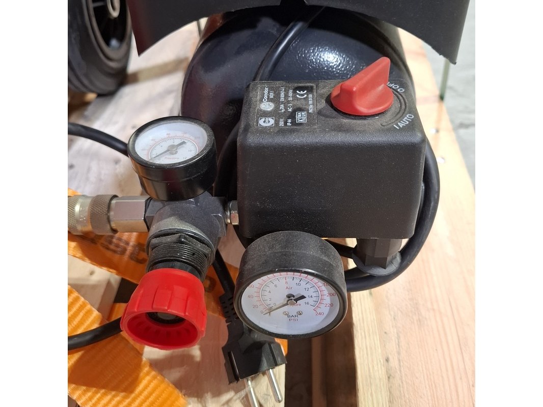 Merk: o.a Pasquin Product: Garagekrik en compressor Afmeting: Diverse maten Conditie: gebruikt Specificaties: Bestaande uit: 1x Pasquin P.304, LxBxH ca. 102x29x171 cm. 1x Aerotec Super Silent Profi 66 Technische staat en compleetheid onbekend. Exclusief pallet