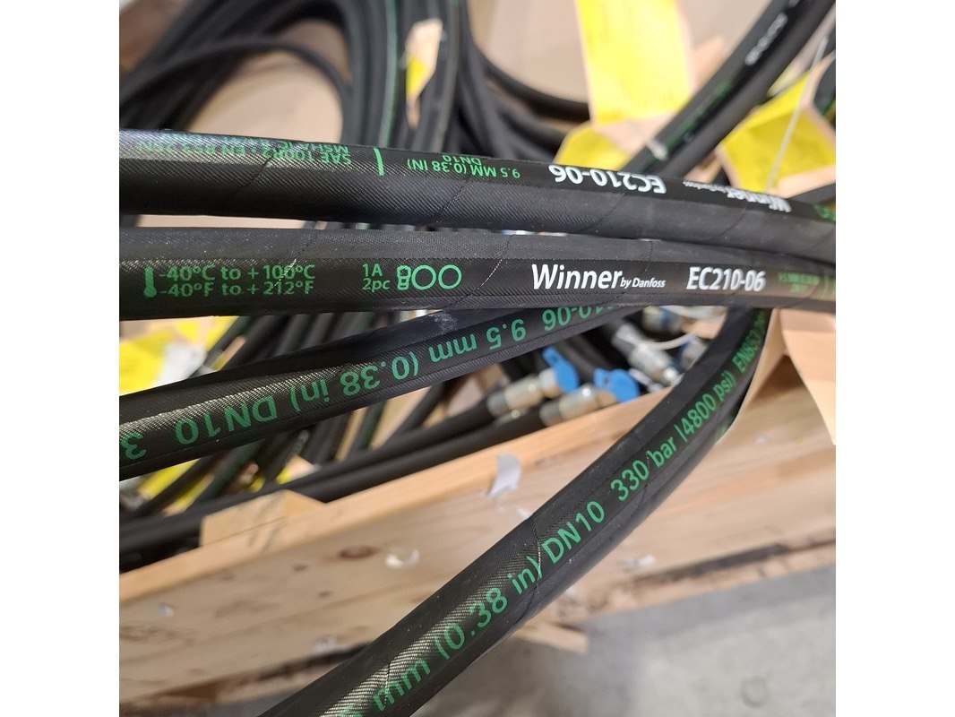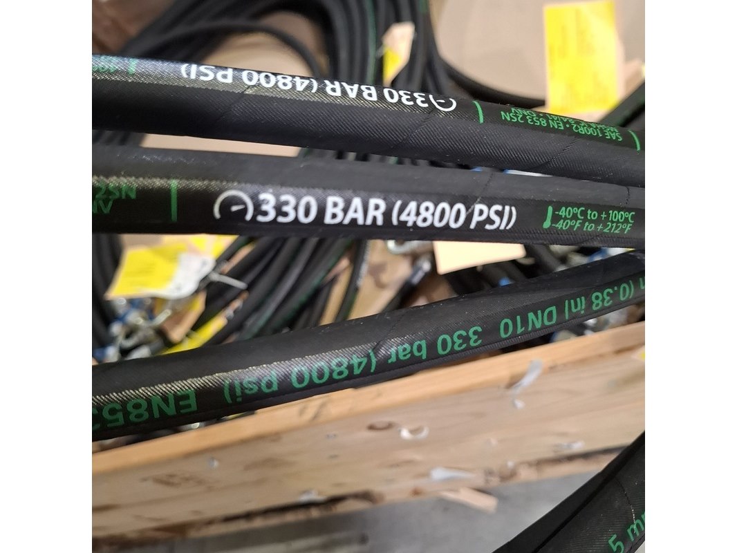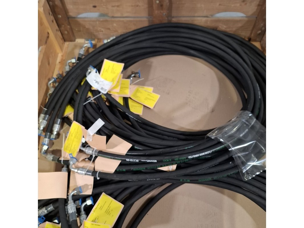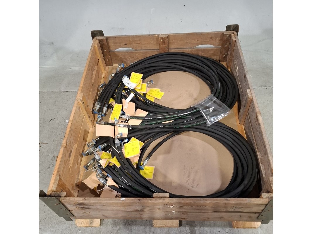 Product: Partij hydraulische slangen Afmeting: Lengte o.a 200 cm. Conditie: gebruikt Specificaties: Datum op koppeling: 10/2024 Technische staat en compleetheid onbekend. Exclusief palletkist