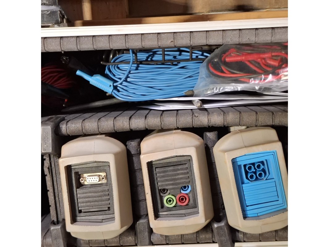 Diverse meetapparatuur en 2x houten transportkist, o.a nieaf