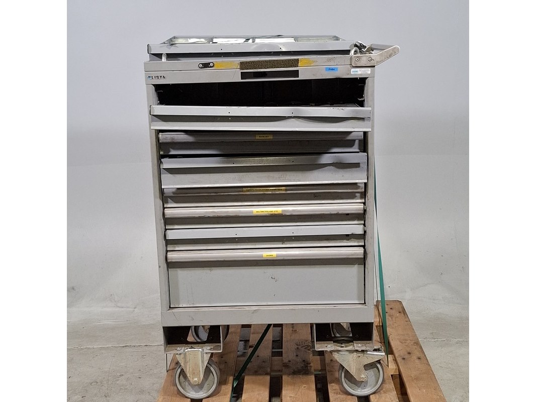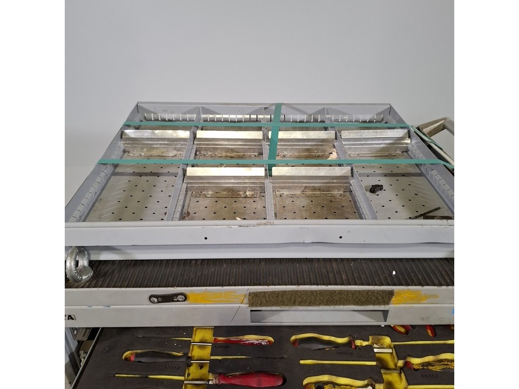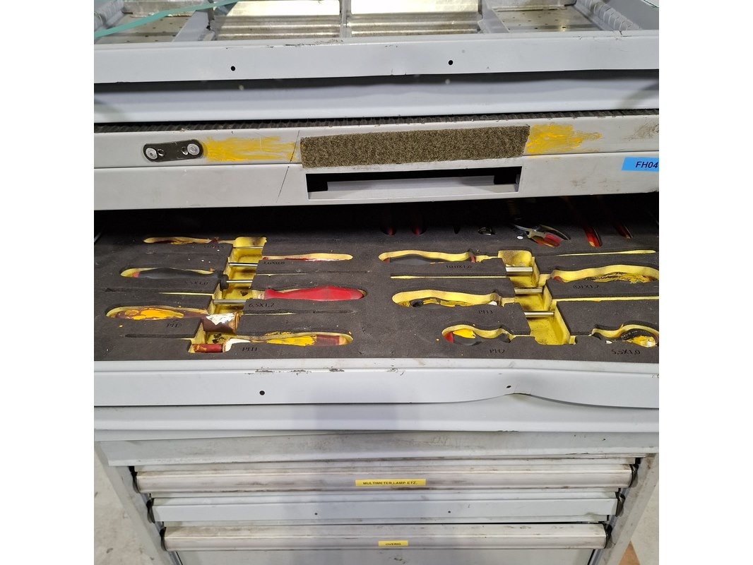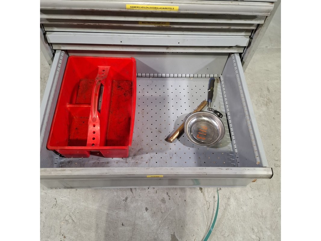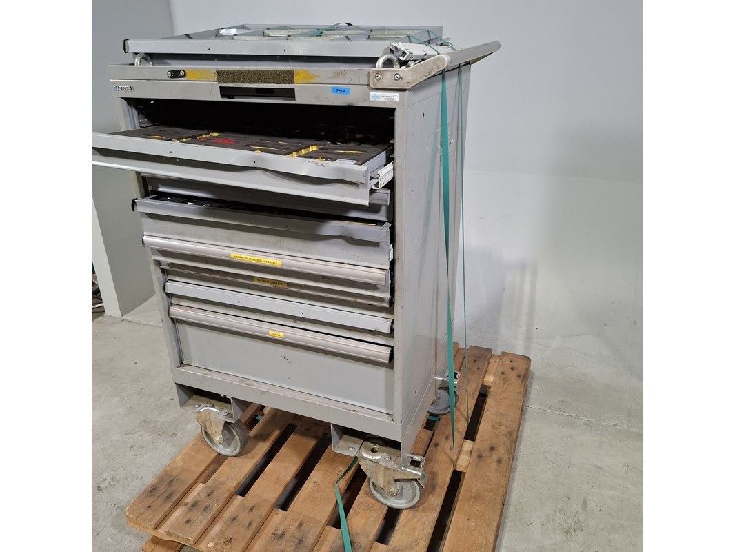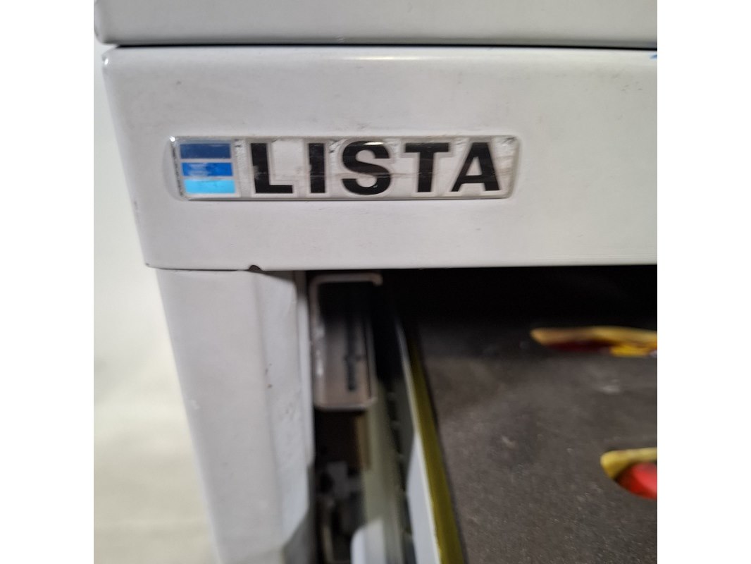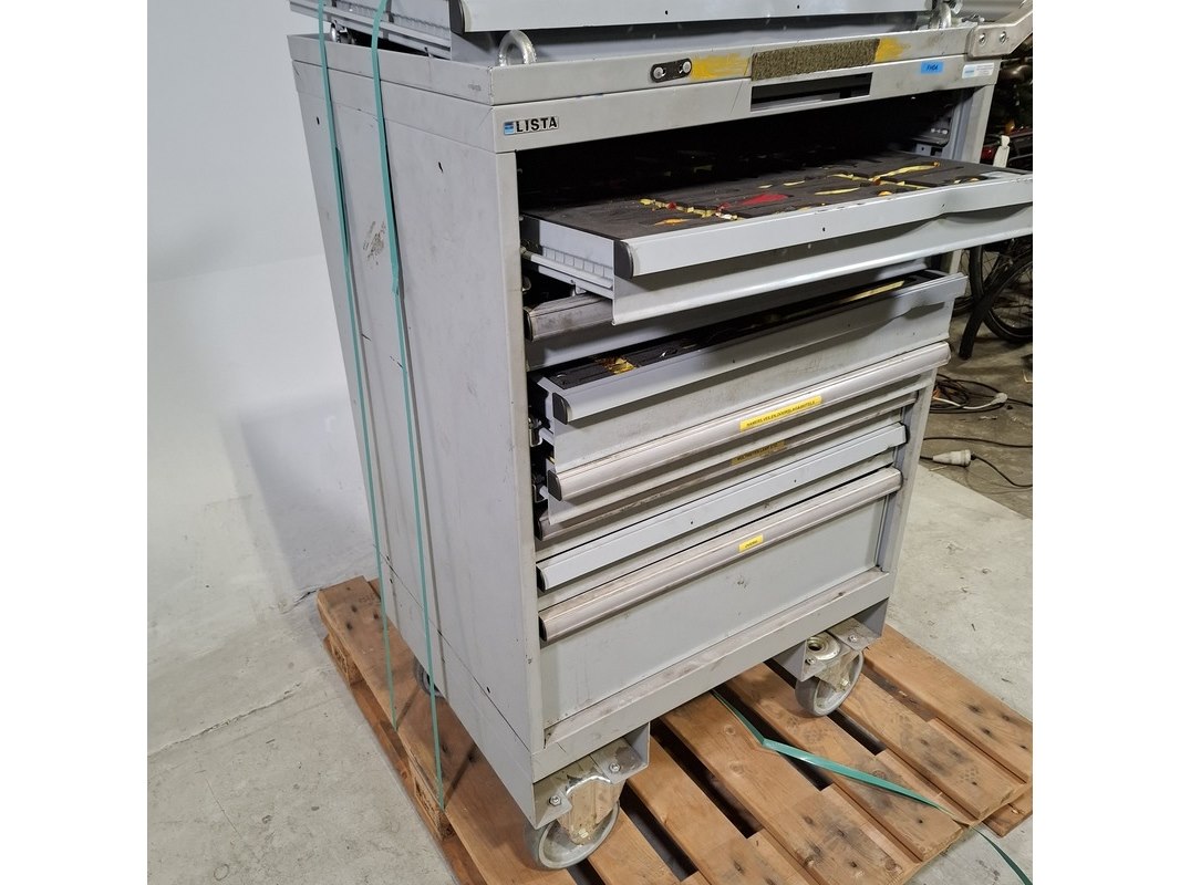 Merk: Lista Product: Beschadigde gereedschapswagen met inhoud Afmeting: HxBxD ca. 118x80x60 cm. Conditie: gebruikt Specificaties: Lades gevuld met: Imbusset, tangen, steeksleutels, schroevendraaiers en etc. De kar heeft diverse deuken en krassen, bovenste lades gaan niet open . Verdere technische staat en compleetheid onbekend. Exclusief palletkist