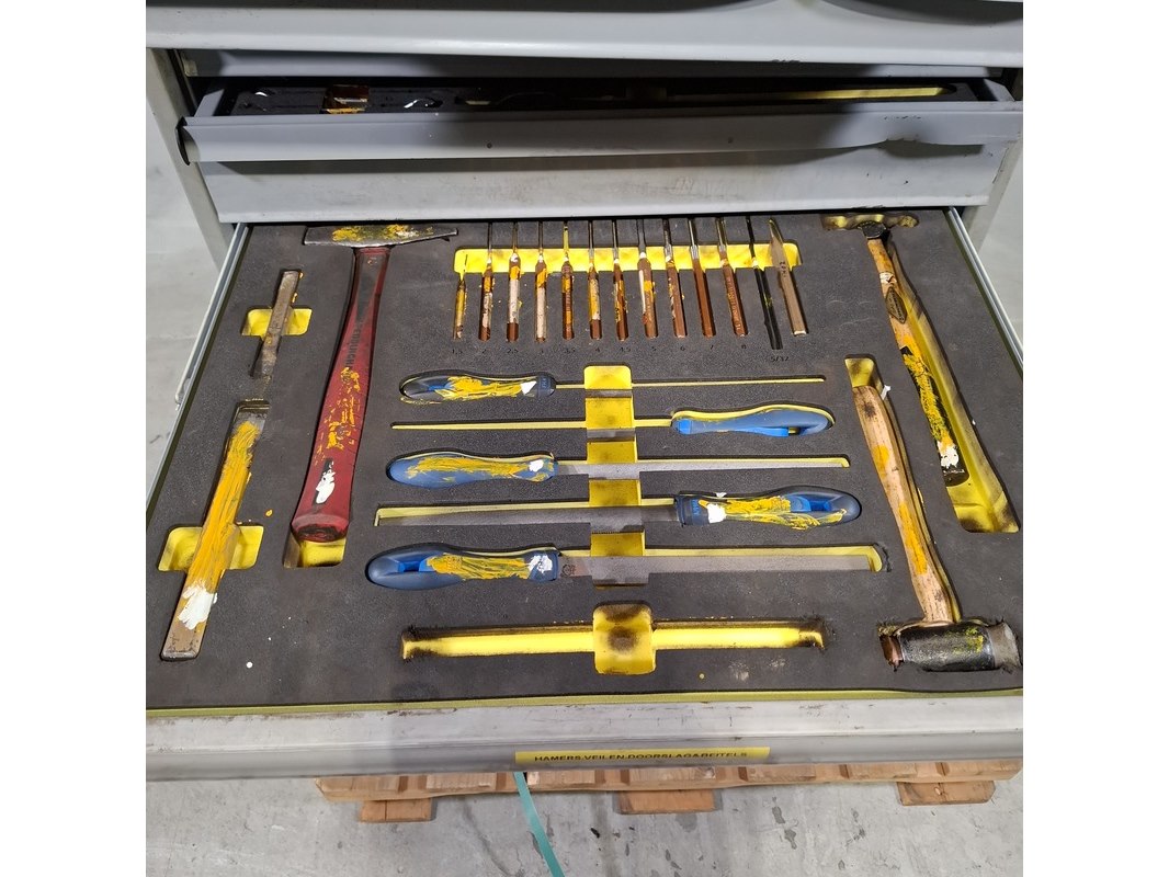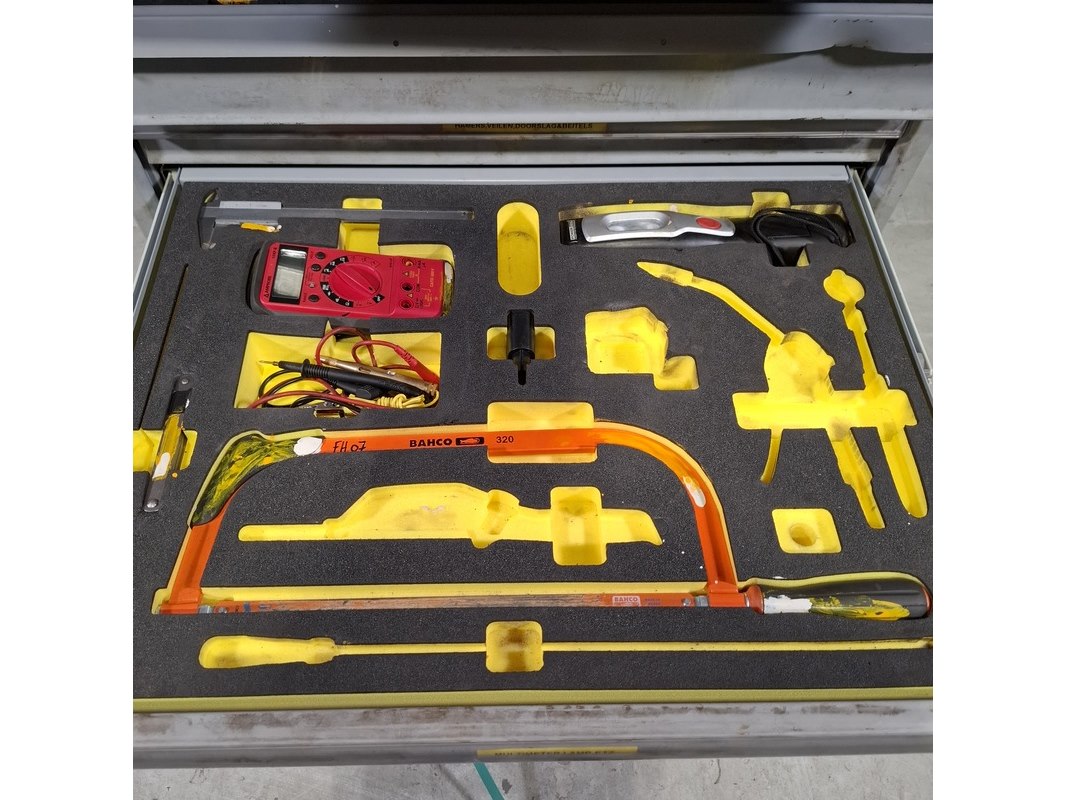 Beschadigde gereedschapswagen met inhoud, lista