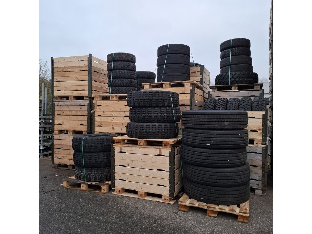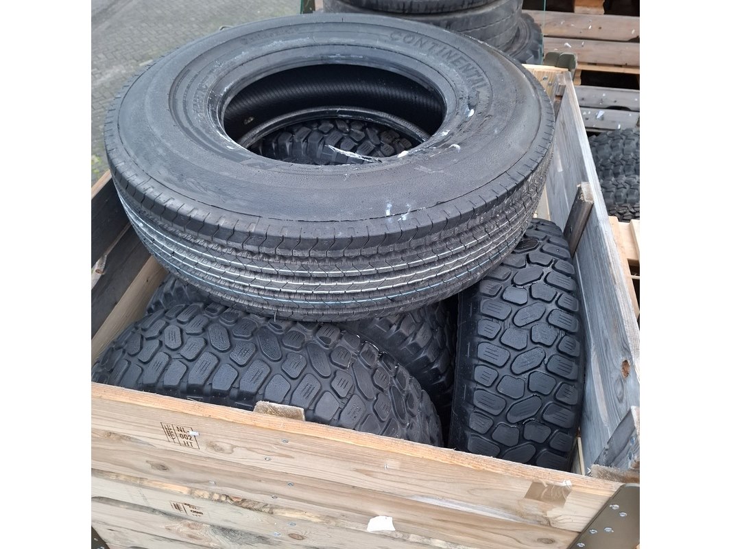Merk: o.a. Continental Product: Partij diverse banden Conditie: gebruikt Specificaties: Bestaande uit o.a. Terreinbanden, vrachtwagenbanden, (versleten) autobanden, etc Technische staat en compleetheid onbekend. Exclusief pallets en palletkisten.