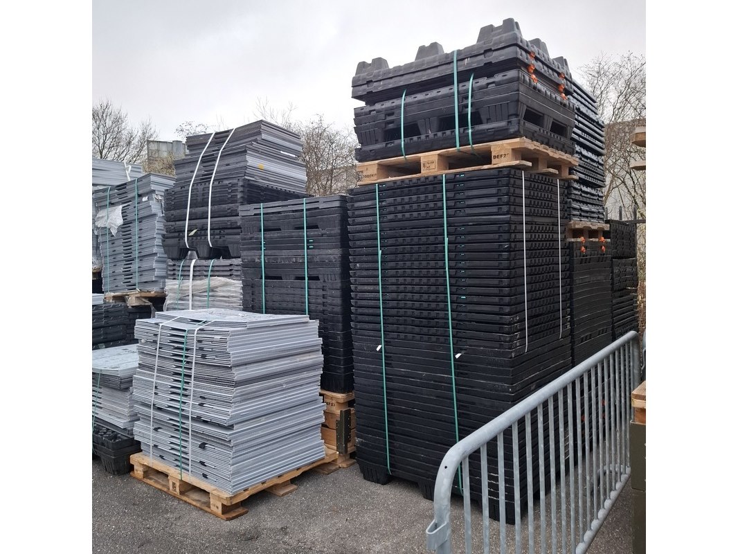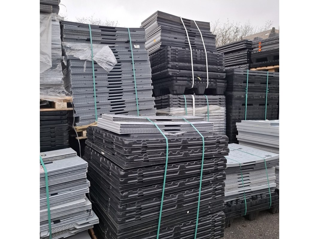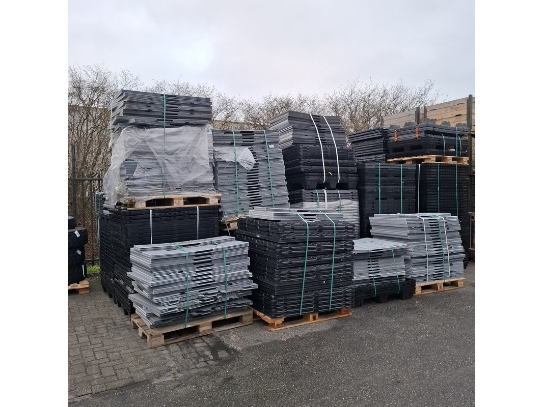 Merk: o.a. Engels Product: Partij uni-paks Afmeting: lxb ca. 100x120 cm Specificaties: Bestaande uit o.a. deksels, randen en bodemplaten. Technische staat en compleetheid onbekend.
