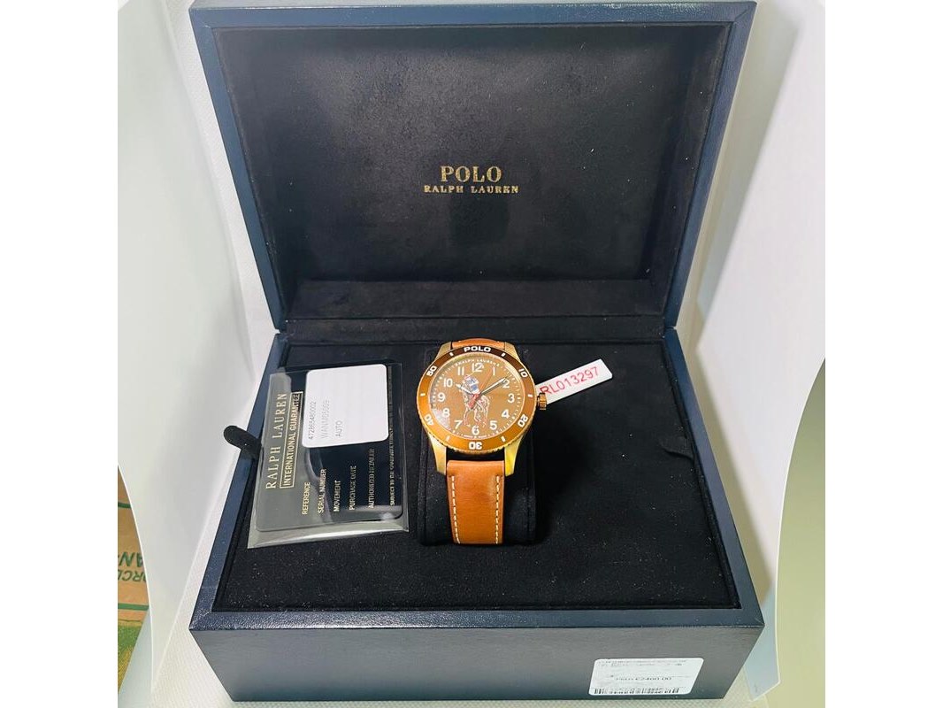Product: Polo Ralph Lauren herenhorloge - ''The Polo Player'' - Full set Afmeting: 42mm Conditie: Nieuw Specificaties: Herenhorloge van het merk Polo Ralph Lauren. Model: ''The Polo Player''. Met Bronzen kast, 3D wijzerplaat. Automatisch Uurwerk. Inclusief doos en garantiekaart, full set.