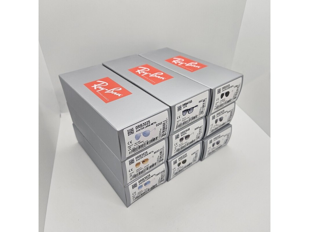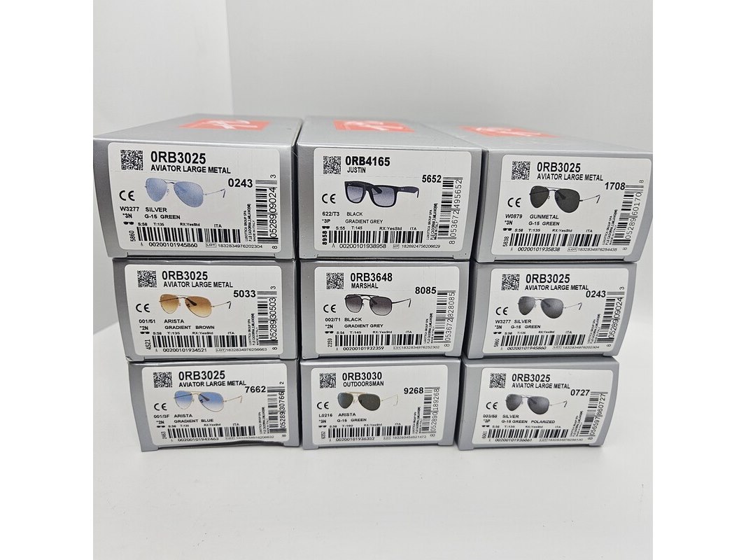Product: Rayban zonnebrillen - Aviator, Marshall, Outdoorsman etc Conditie: Nieuw Specificaties: 9 zonnebrillen van Rayban. Nieuw in doos. Verschillende modellen.