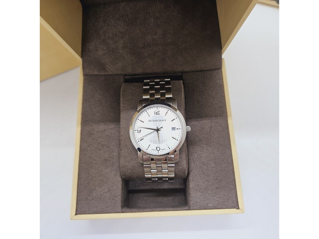 Product: Burberry BU1308 herenhorloge - Full set Afmeting: 36mm Conditie: Gebruikt Specificaties: Uurwerk loopt goed. Merk: Burberry. Model: BU1308. Dit betreft een tweedehands item met lichte sporen van gebruik. Full set (doos, omdoos, papieren).
