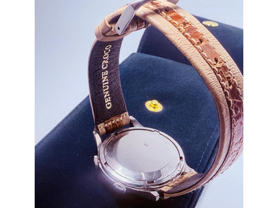 Product: Jaeger LeCoultre Memovox met alarmfunctie - staat stil Conditie: Gebruikt Specificaties: Met krokodillenleren band en juweliersetui. Gebruikt antiek met duidelijke sporen van gebruik en leeftijd. Horloge staat stil.