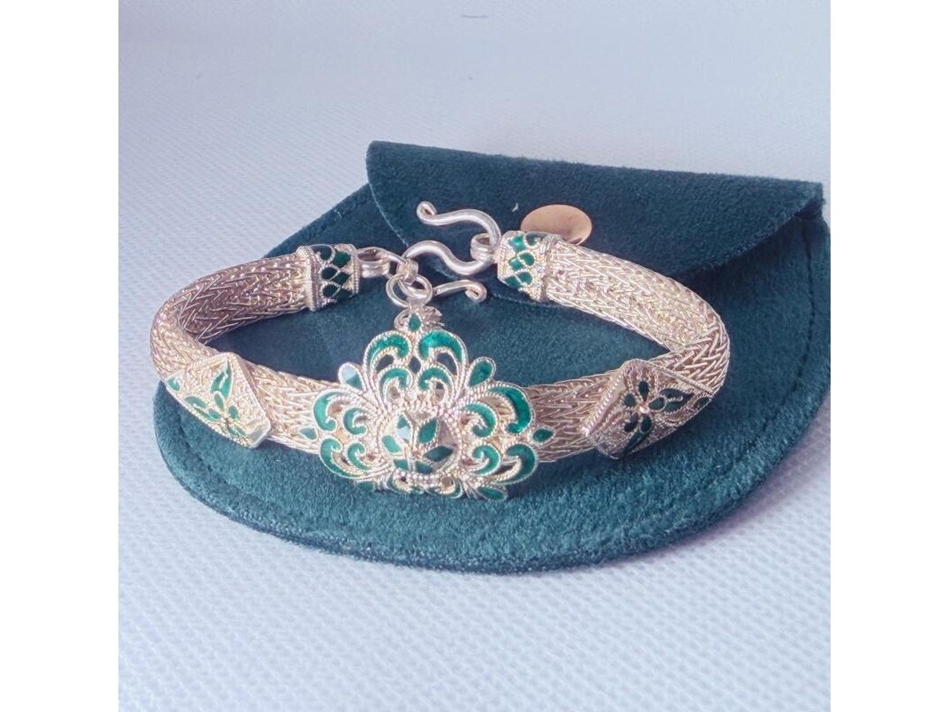 Product: Thais zilveren juweliersarmband met emaille details Specificaties: 925 zilver, ongedragen, inclusief juweliers etui.