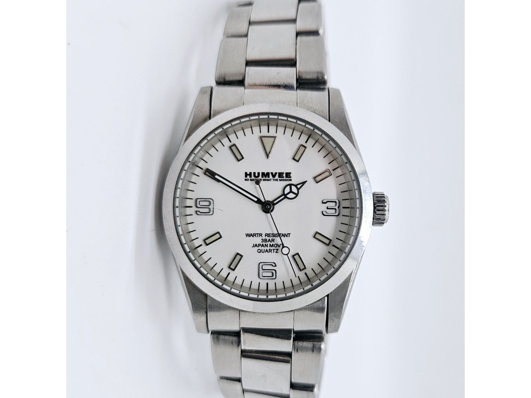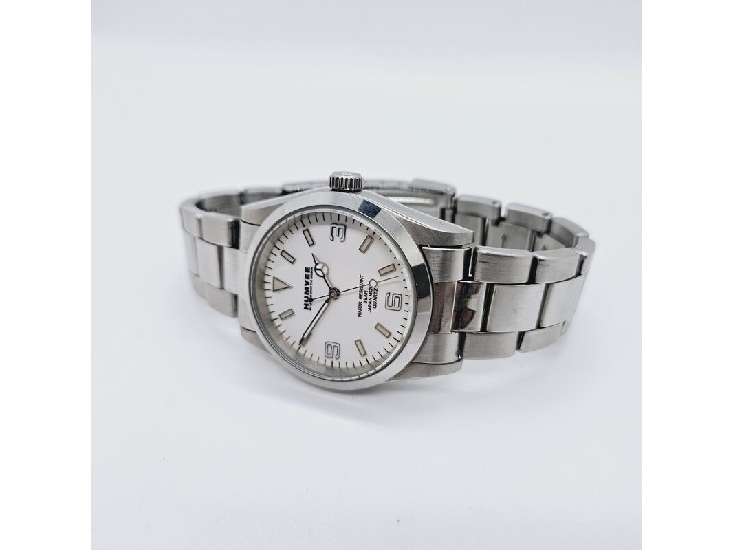 Product: Humvee 'No Matter What The Vision' herenhorloge Afmeting: 35mm Conditie: Gebruikt Specificaties: Werkend getest op quartz-tester, heeft een nieuwe batterij nodig. Merk: Humvee. Model: H632. Dit betreft een tweedehands item met sporen van gebruik. Met schroefkroon.