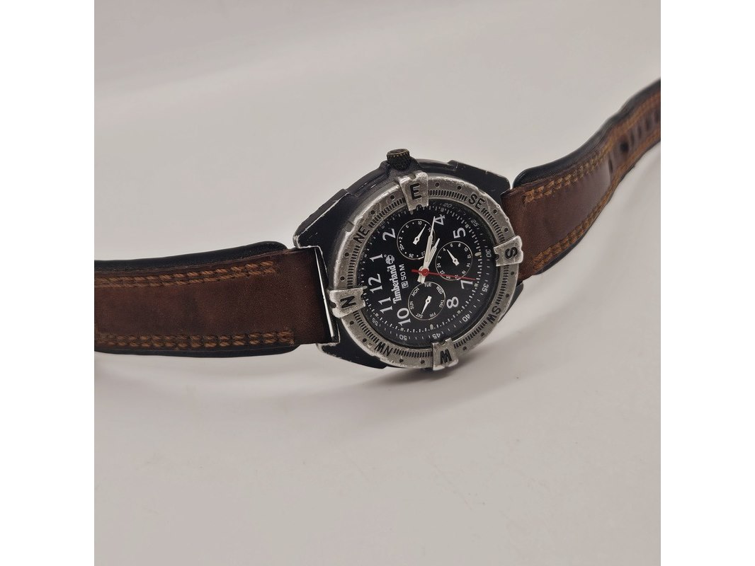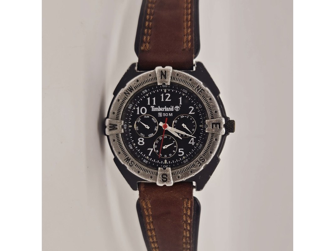 Product: Timberland herenhorloge Afmeting: 42mm Conditie: Gebruikt Specificaties: Uurwerk loopt goed. Merk: Timberland. Dit betreft een tweedehands item met sporen van gebruik.