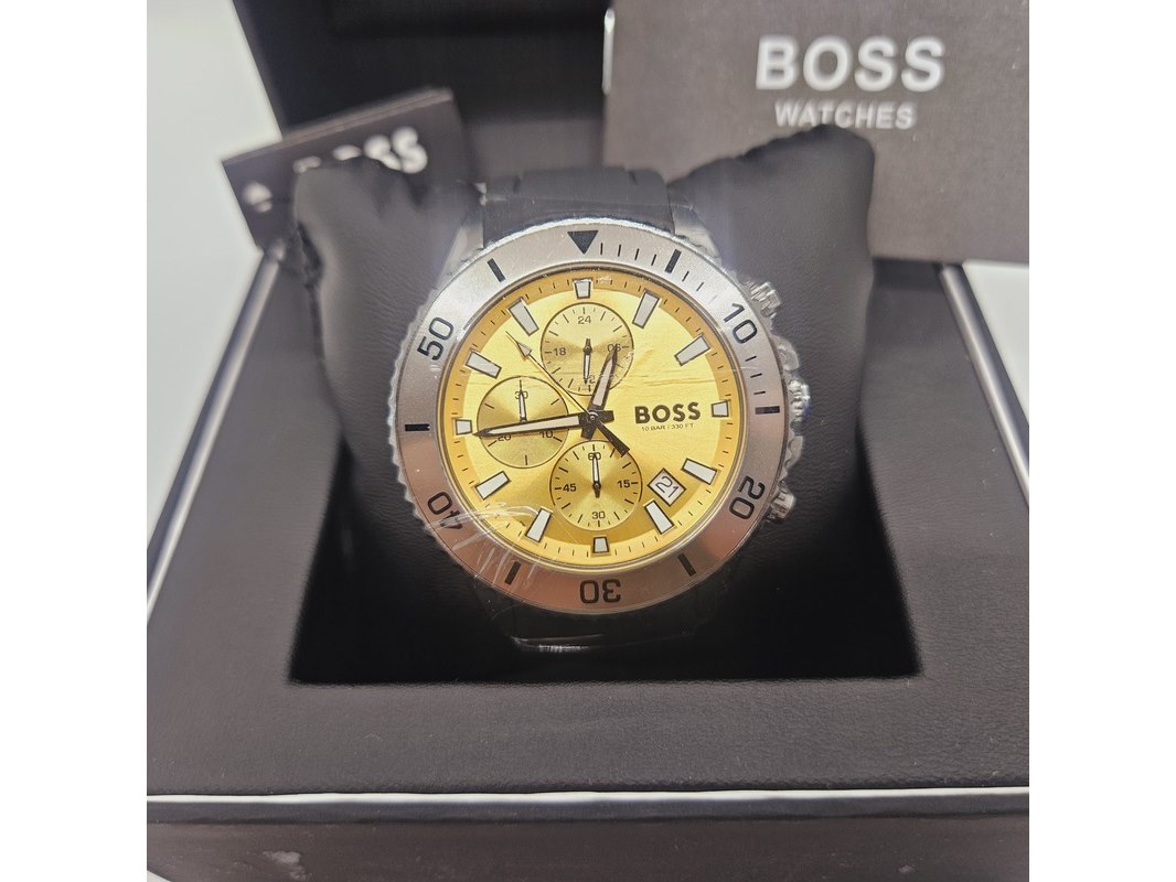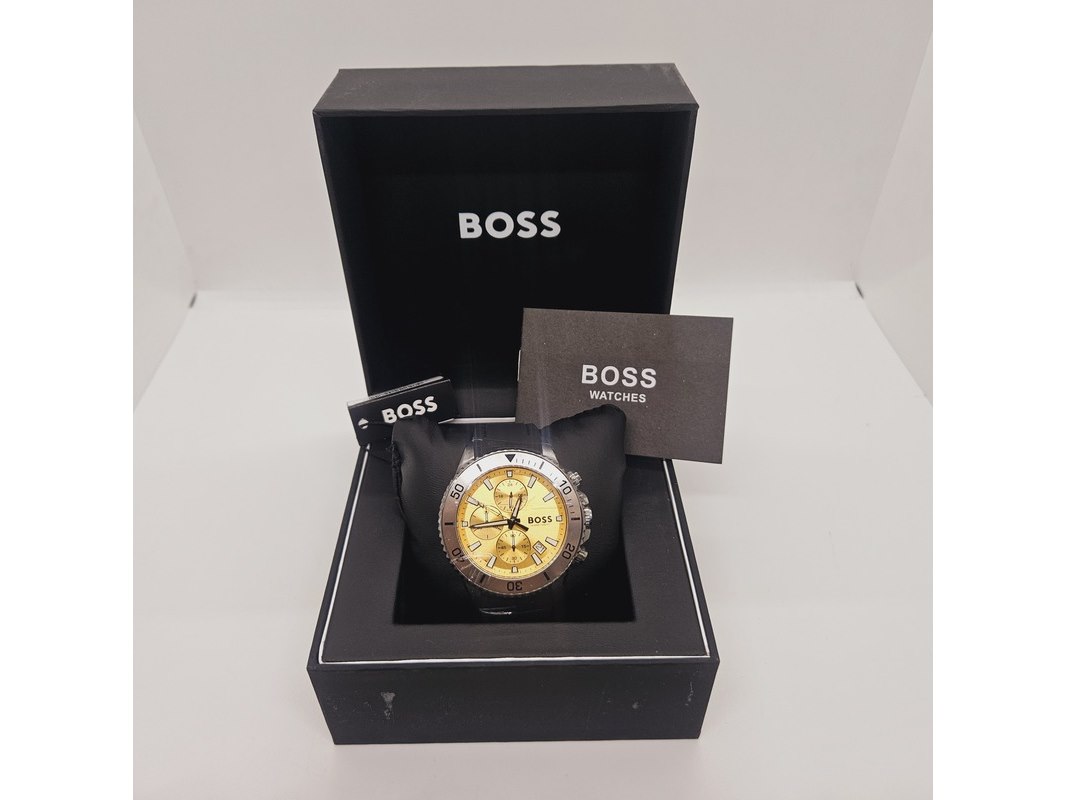 Product: Hugo Boss HB3661293325 chronograaf herenhorloge Afmeting: 44mm Conditie: Nieuw Specificaties: Nieuw uit oud juweliersvoorraad. Werkend getest op quartz-tester, heeft een nieuwe batterij nodig. Merk: Hugo Boss. Model: HB3661293325. Full set, inclusief doos en papieren. Horloge zit nog in het plastic.